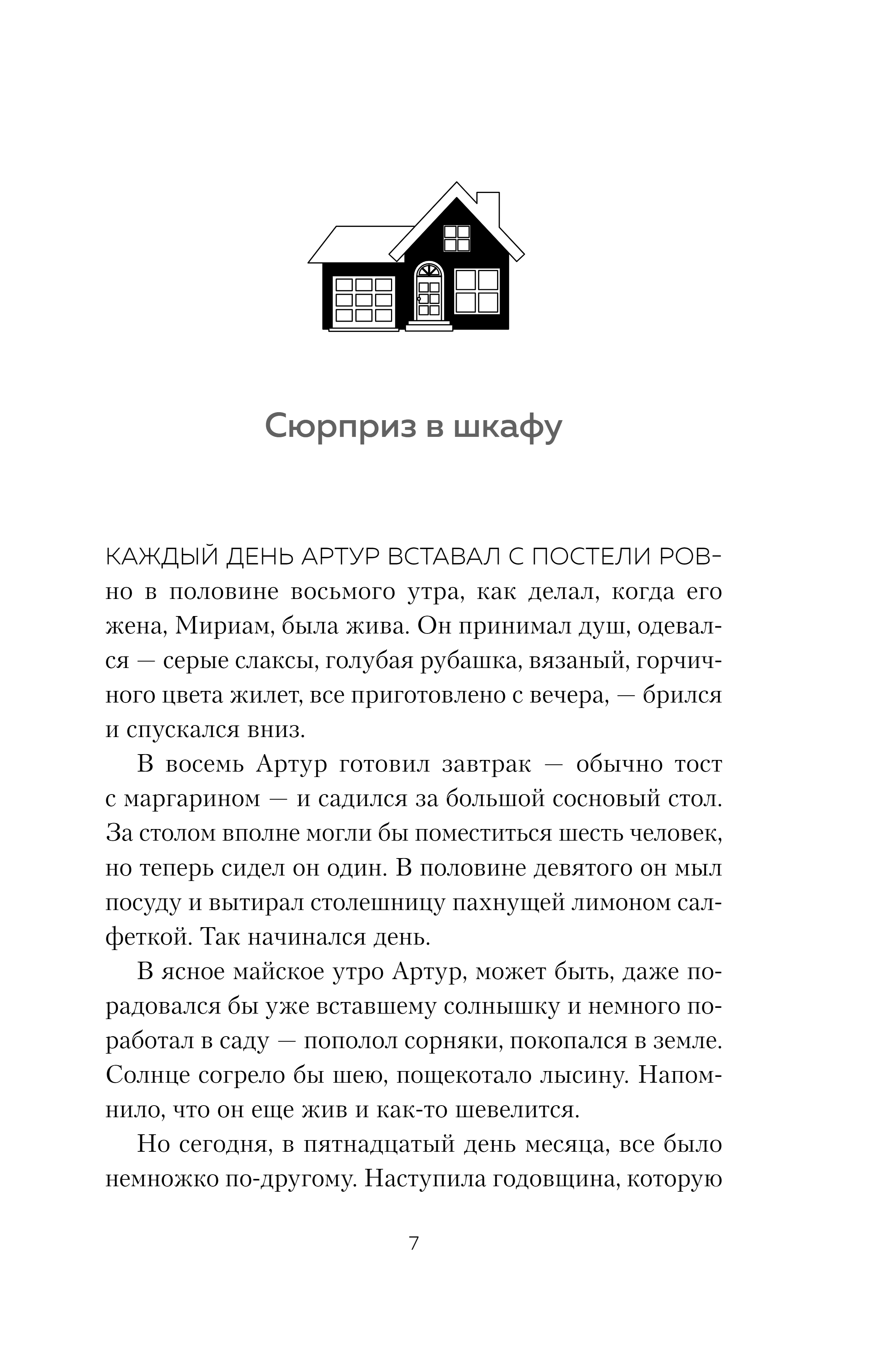 Артур Пеппер строго следует распорядку дня, который сохранился с тех времен, когда его жена Мириам была жива. Он встает с постели ровно в 7:30 утра, надевает серые брюки и горчичную шерстяную жилетку, поливает свой папоротник Фредерику и идет ухаживать за садом.