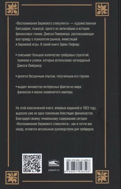 Эта художественная биография, пожалуй, одного из самых величайших в истории финансовых гениев, Джесси Ливермора, рассказывает всю правду о психологии рынков, инвестиций и биржевой игры. Для широкого круга читателей.