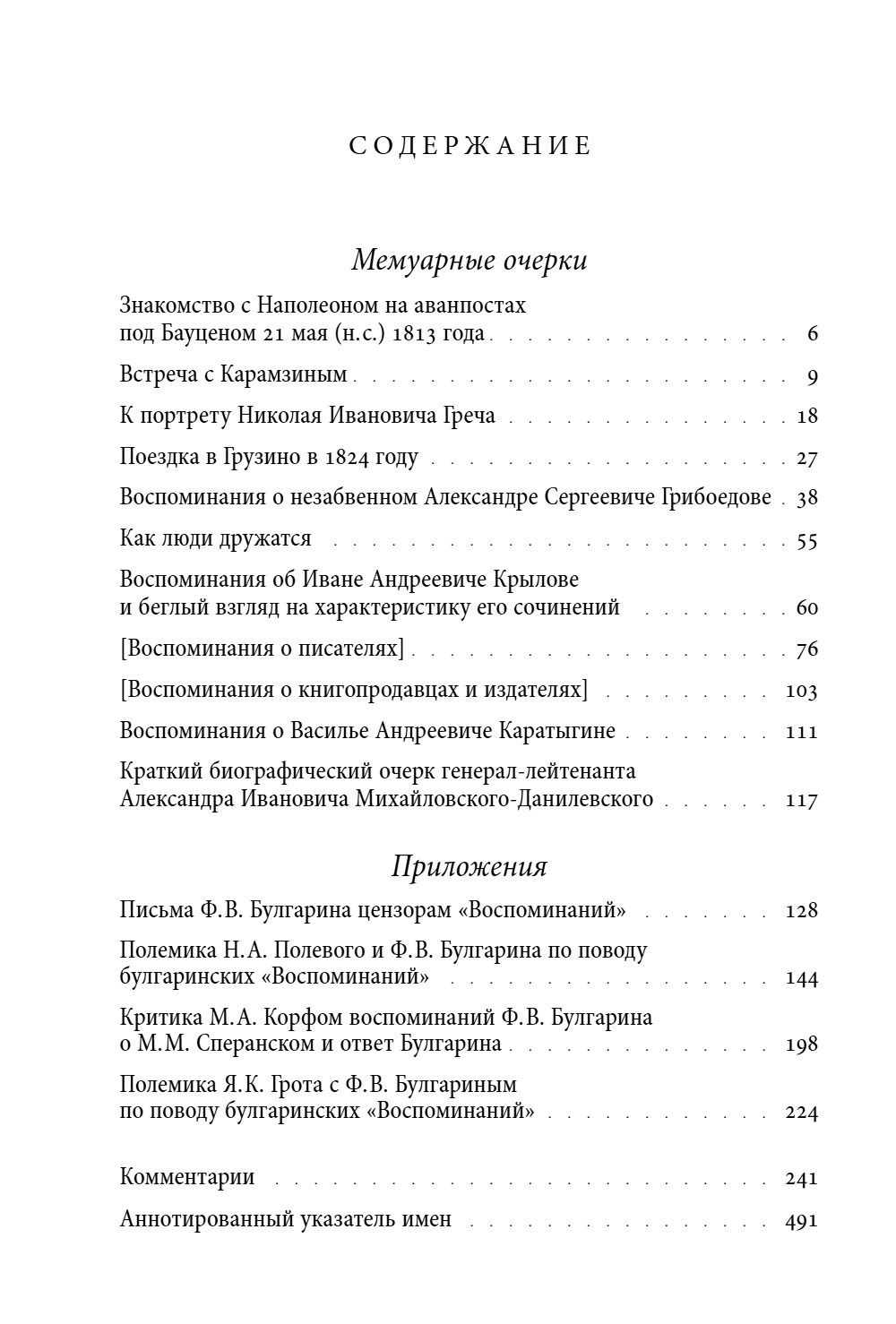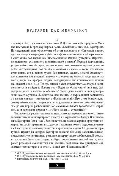 Фаддей Венедиктович Булгарин (1789-1859) – одна из ключевых фигур русской литературы первой половины XIX века. Ожесточенная полемика с А. С. Пушкиным и действия в качестве агента Третьего отделения способствовали ухудшению его репутации, но не следует забывать, что он был одним из самых читаемых авторов своего времени, крупным издателем и редактором – в частности, первым сумел «провести в печать» фрагменты «Горя от ума» А. С. Грибоедова и ввел в русскую литературу ряд жанров. Занявшись публикацией своих мемуаров, Булгарин совершил беспрецедентный поступок: впервые в России мемуарист при жизни издал автобиографию «Воспоминания», вошедшие в первый том этого издания, повествуют о начальном этапе бурной жизни автора, достойной плутовского романа: детстве в польской семье в Белоруссии, обучении в кадетском корпусе в Петербурге, участии в войнах с Францией и Швецией, службе в Кронштадте, петербургском быте и развлечениях начала XIX века, встречах с известными людьми и оюбовных увлечениях. Более поздний этап жизненного пути Булгарина отражен в мемуарных очерках, составляющих второй том книги. Они посвящены Наполеону Карамзину, Аракчееву, Крылову, Грибоедову и др. В качестве приложения публикуются письма Булгарина цензорам «Воспоминаний», донос М. А. Корфа на мнение писателя о М. М. Сперанском, отклики Н. А. Полевого и Я. К. Грота на «Воспоминания» и ответы им автора