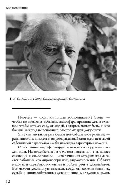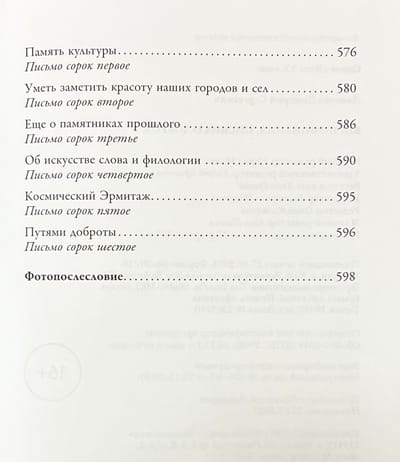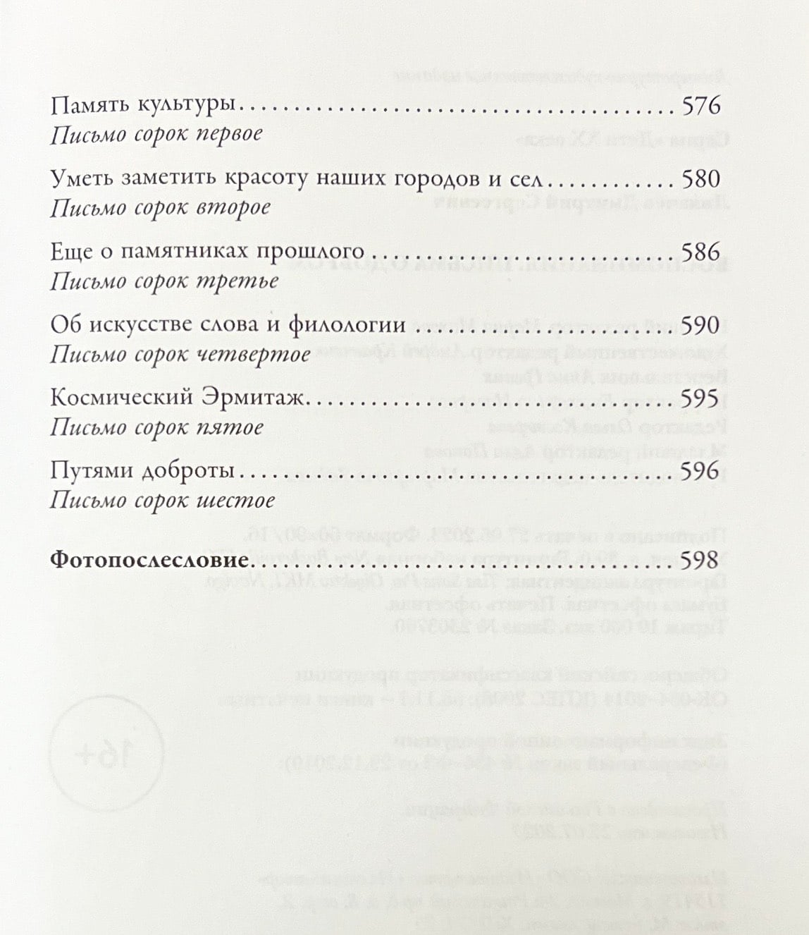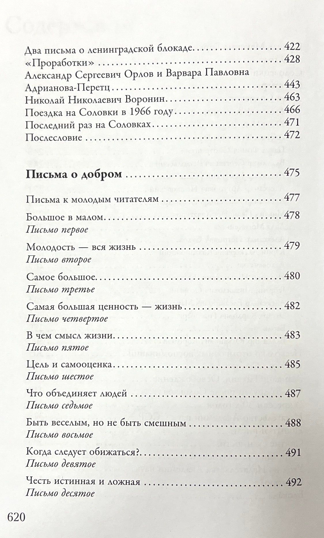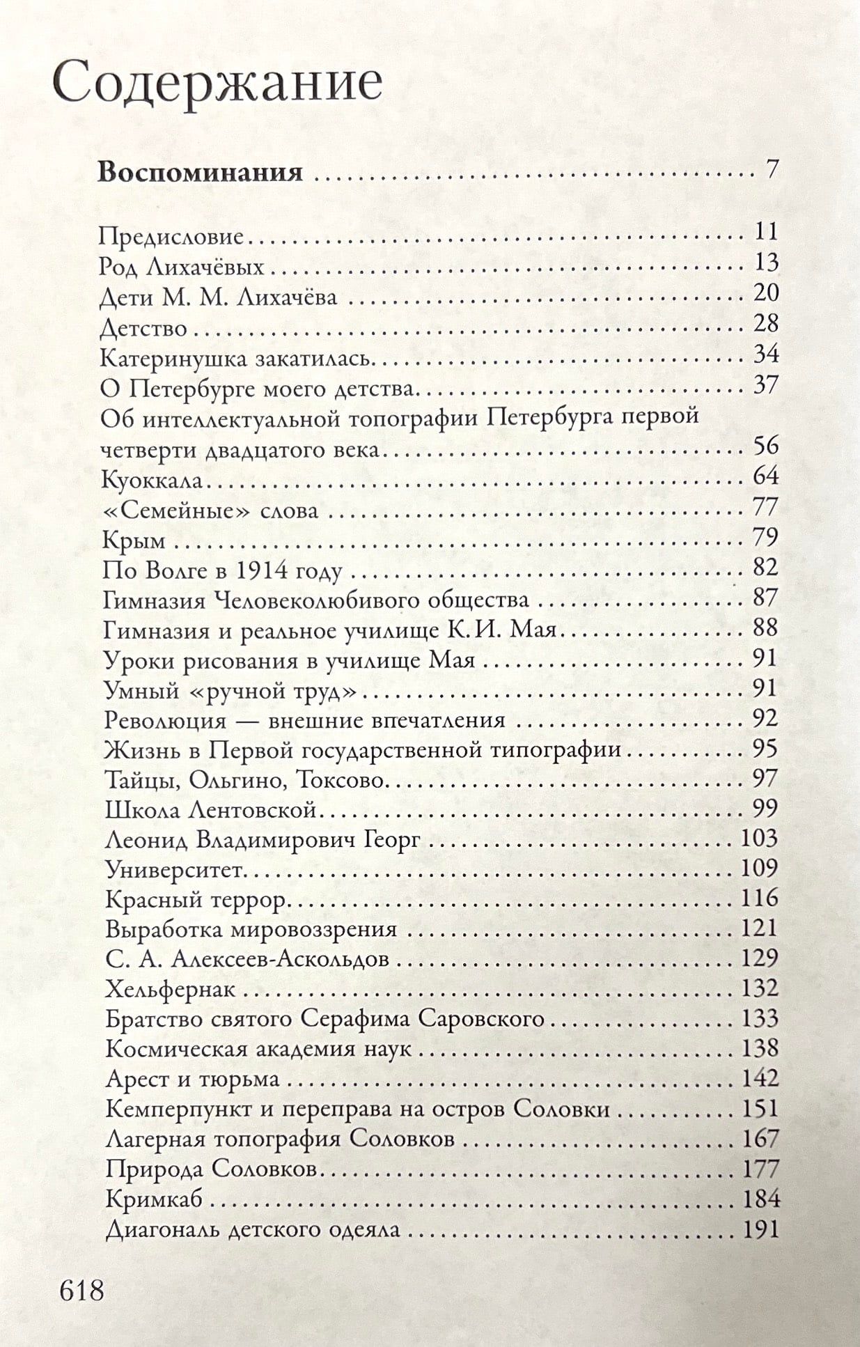 В книгу вошли также «Письма о добром» — послание великого ученого и мудрого человека к молодым читателям: как быть добрым, как видеть красоту в окружающем мире и себе, как прожить жизнь достойно. Приводя самые простые доводы, Дмитрий Сергеевич объясняет, что «следование путем добра — путь самый приемлемый и единственный для человека». Издание иллюстрировано фотографиями, запечатлевшими дореволюционный Петербург, быт заключенных Соловецкого лагеря, блокадный Ленинград, а также рисунками Дмитрия Сергеевича из «Новгородского альбома». В фотопослесловие помещены материалы из семейного архива Д. С. Лихачёва.