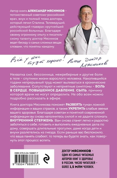Усталость и нехватка сил усиливают хронические заболевания или даже могут вызывать их. Вы узнаете, какая правда содержится в расхожем выражении «все болезни от нервов». Ваш эмоциональный фон становится нестабильным, ум теряет свою ясность, слова ускользают из памяти. Это может ухудшить отношения с близкими, вызвать агрессию и беспричинные слезы, с которыми вы не можете справиться. В своей новой книге доктор Мясников объяснит, как сохранить положительную энергию жизни и не дать негативу разрушить ваше здоровье.