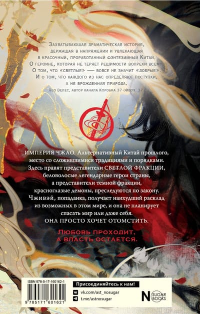 История вдохновлена Дейнерис и большой любовью к китайским дорамам. Империя Чжао — альтернативный Китай прошлого, место со сложившимися традициями и порядками. В ней правят представители Светлой фракции, беловолосые легендарные герои страны, а представители темной фракции, красноглазые демоны, преследуются по закону. Чживэй, попаданка, получает наихудший расклад из возможных в этом мире, и она не планирует спасать мир или даже себя. Она просто хочет отомстить.