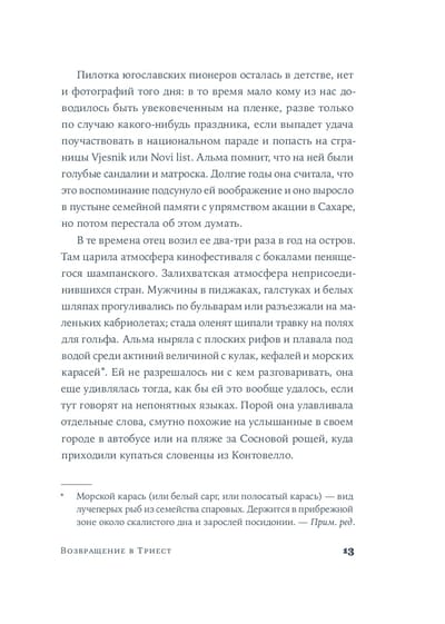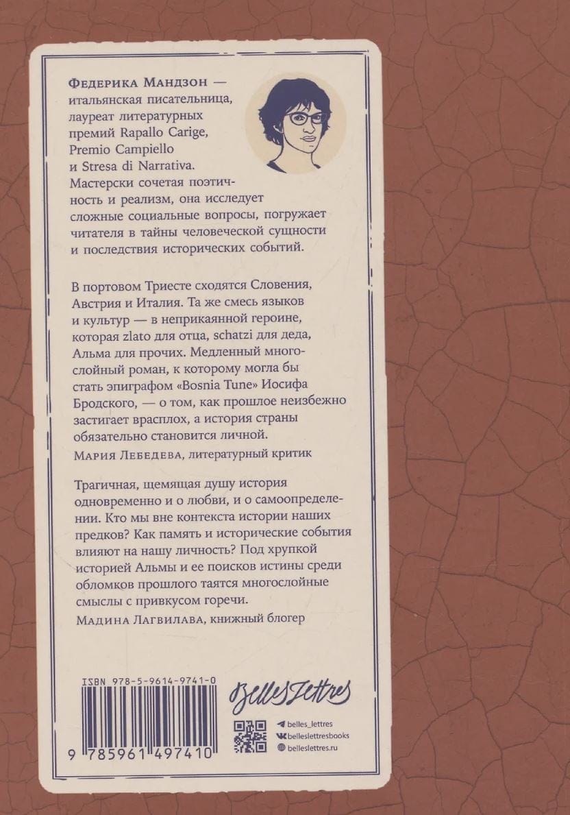 Федерика Мандзон искусно исследует темы идентичности, памяти и истории на фоне болезненного перехода от единой Югославии к образованию Сербской и Хорватской республик. Триест, с его уникальной атмосферой пограничного города, становится отправной точкой для размышлений о том, как собрать разрозненные части души воедино и найти свой путь домой.