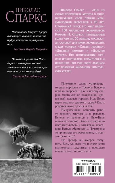 Последние слова умирающего деда породили у Тревора Бенсона немало вопросов... Как и почему старик, много лет не покидавший крошечный южный городок Нью‑Берн, вдруг оказался далеко от дома? Каких родственников просил найти? Вынужденный оставить работу военного хирурга из‑за ранения, Бенсон отправляется в Нью‑Берн в поисках ответов. Здесь его внезапно настигает любовь к загадочной красавице Натали Мастерсон... Но почему она то принимает его ухаживания, то отдаляется от него? Юг хранит множество тайн и очень не любит их раскрывать. Однако Тревор не намерен отступать. Ведь для него — это прежде всего возможность расстаться с прошлым и начать все с чистого листа.