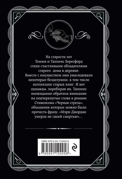 На старости лет Томми и Таппенс Бересфорды стали счастливыми обладателями старого дома в деревне. Вместе с имуществом они унаследовали некоторые безделушки, в том числе коллекцию старых книг. И вот однажды, перебирая их, Таппенс неожиданно обратила внимание на подчеркнутые слова в романе Стивенсона «Черная стрела», объединив которые, можно было прочесть фразу: «Мэри Джордан умерла не своей смертью»…