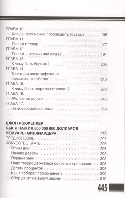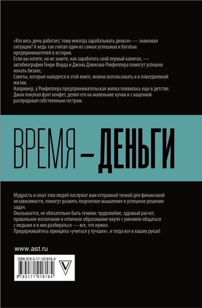 «Кто весь день работает, тому некогда зарабатывать деньги» — знакомая ситуация? А ведь так считал один из самых успешных и богатых предпринимателей в истории. Если вы хотите, но не знаете, как заработать свой первый капитал, — автобиографии Генри Форда и Джона Дэвисона Рокфеллера помогут успешно начать бизнес. Советы, которые находятся в этой книге, можно использовать и в повседневной жизни. Например, у Рокфеллера предпринимательская жилка появилась еще в детстве. Джон покупал фунт конфет, делил его на маленькие кучки и с наценкой распродавал собственным сестрам. Мудрость и опыт авторов послужат вам отправной точкой для финансовой независимости, помогут развить творческое мышление и успешное решение задач. Оказывается, необязательно быть гением — трудолюбие, здравый расчет, правильное воспитание и отличное образование вкупе с умением общаться с людьми и в них разбираться — все, что нужно.