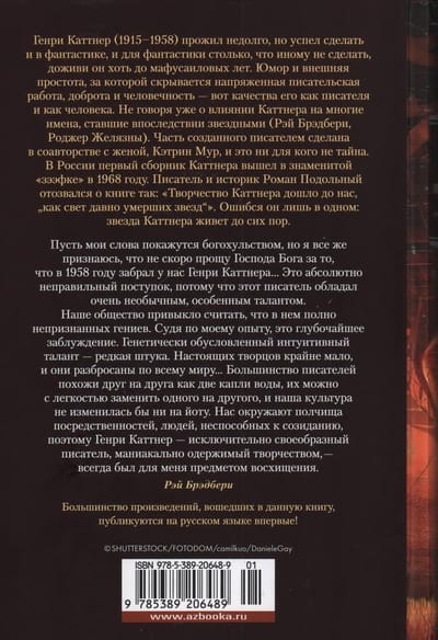 Генри Каттнер, публиковавшийся не только под своей настоящей фамилией, но и под доброй дюжиной псевдонимов, считается одним из четырех или пяти ведущих американских фантастов 1940-х. Легендарные жанровые журналы, такие как «Future», «Thrilling Wonder», «Planet Stories» и «Weird Tales», более чем охотно принимали произведения, написанные им самостоятельно или в соавторстве с женой, известным мастером фантастики и фэнтези Кэтрин Люсиль Мур; бывало, что целый выпуск журнала отводился для творчества Каттнера. Почти все, созданное этим автором, имеет оттенок гениальности, но особенно удавалась ему «малая литературная форма»: рассказы о мутантах Хогбенах, о чудаковатом изобретателе Гэллегере и многие другие, сдобренные неподражаемым юмором, нескольким поколениям читателей привили стойкую любовь к фантастике.