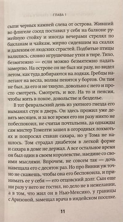 Новый роман автора, книги которого дважды становились финалистами премии Booker, — это тончайшее кружевное полотно о любви, памяти, горе и давно похороненных секретах. Полицейский Том Кеттл почти год назад вышел на пенсию и обосновался в съемной квартирке, расположенной в пристройке викторианского замка, с видом на Ирландское море. Долгие месяцы он ни с кем не разговаривал, да почти и не видел никого, разве что мельком — своего эксцентричного домовладельца и нервную молодую мать, недавно вселившуюся в соседнюю квартиру. Жизнь Тома осталась в прошлом, он живет, не различая реальности и воспоминаний — о любимой жене Джун, дочери Винни и сыне Джо.