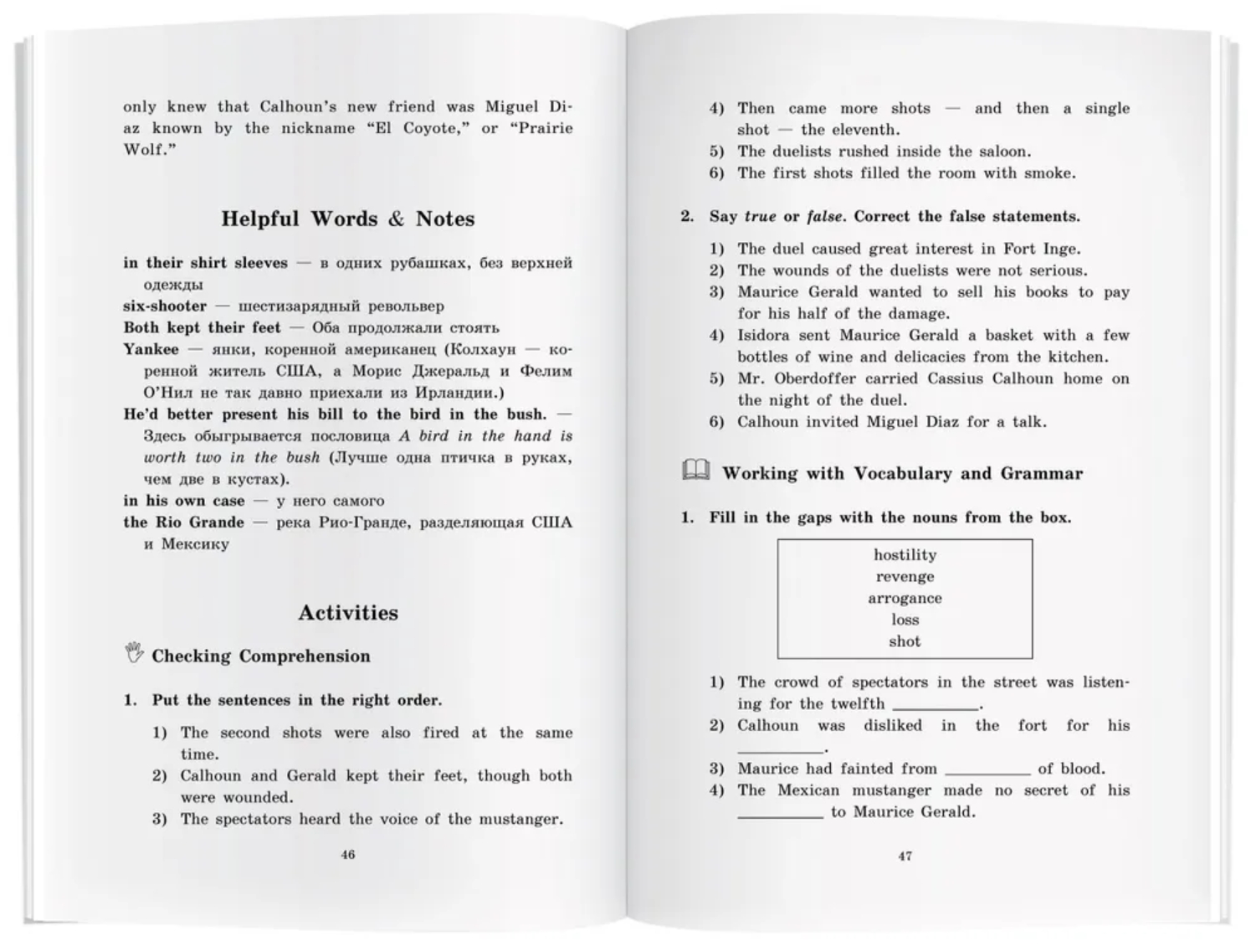 После каждой главы даётся комментарий и перевод трудных слов и выражений, а также упражнения, направленные на проверку понимания текста, отработку лексики и грамматических правил, развитие устной речи. Новые слова включены в словарь, который помещён в конце книги.