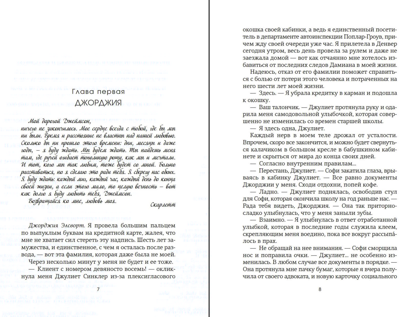 Но, вместе читая рукопись и переписку времен Второй мировой войны, эти двое начинают понимать, почему Скарлетт так и не закончила свой роман. Эта книга основана на реальных событиях, на истории великой любви Скарлетт и военного летчика, и финал у этой истории отнюдь не счастливый. Джорджия точно знает, что любовь всегда приводит к краху. Химия и взаимопонимание между ней и Ноем не подлежат сомнению, но Джорджия намерена не повторить прабабушкиных ошибок, даже если Ной поплатится своей карьерой.
