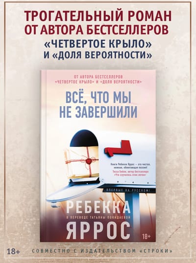 «Всё, что мы не завершили» — эпическая история о том, чем мы готовы рисковать ради любви, о ранах, которые слишком глубоки и никогда не заживут, и о том, чем завершаются истории, даже если мы боимся предвидеть финал.