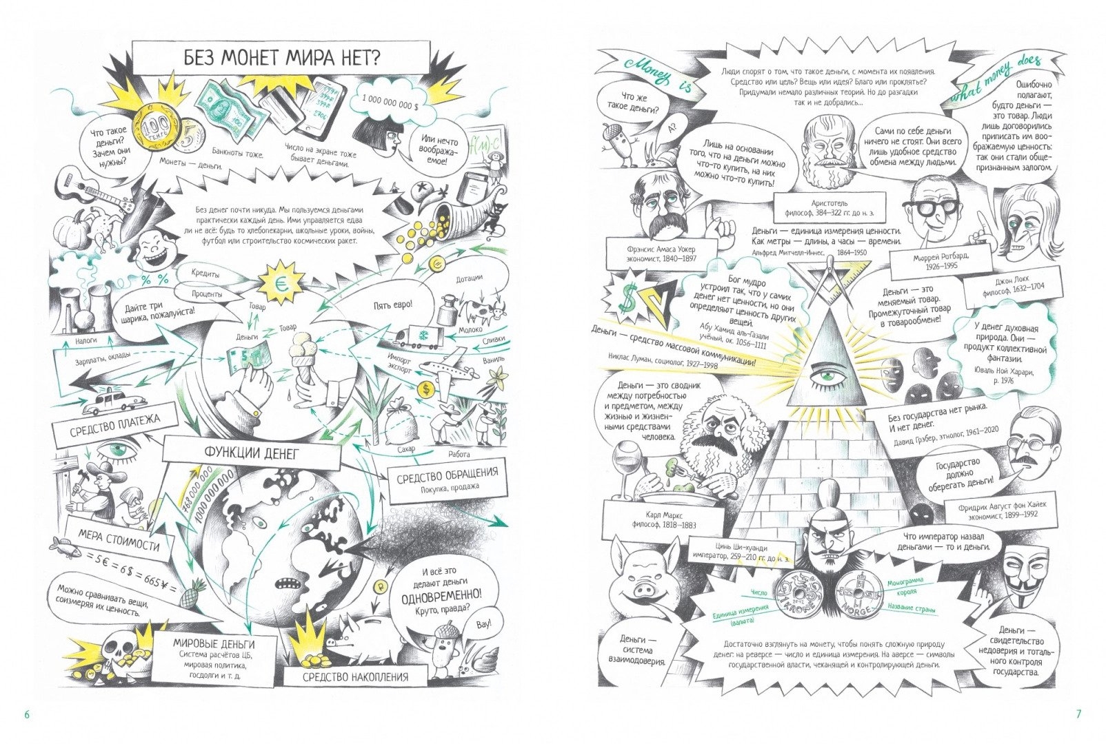 Евро, доллар, йена, франк, рубль, фунт — деньги есть во всём мире. Но что такое «деньги» на самом деле? Монеты, купюры, счёт в банке? Кредитные карты и криптовалюта? Кто всё это придумал, когда и где? Действительно ли деньги правят миром и по каким законам? Как велась торговля до того, как появились деньги? Правда ли, что где деньги — там и обман, и несправедливость? Самое время найти ответ на все эти вопросы с помощью научно-популярного комикса и стать настоящим экспертом по истории денег. Виталий Константинов — иллюстратор, комиксист, писатель. Его работы изданы в 40 странах и удостоены многочисленных премий. Недавно его комикс «История письменности: от клинописи до эмодзи» вышла в нашем издательстве и сразу стала бестселлером. В новой книге вы познакомитесь с разными аспектами существования и использования денег. Это своего рода путеводитель по всемирной истории денежных отношений, который поможет разобраться в том, что действительно волнует всех: правда ли деньги правят миром. Вместе с Виталием Константиновым мы отправимся в занимательное и познавательное путешествие от каури к монетам, от первых банкнот к современным криптовалютам.