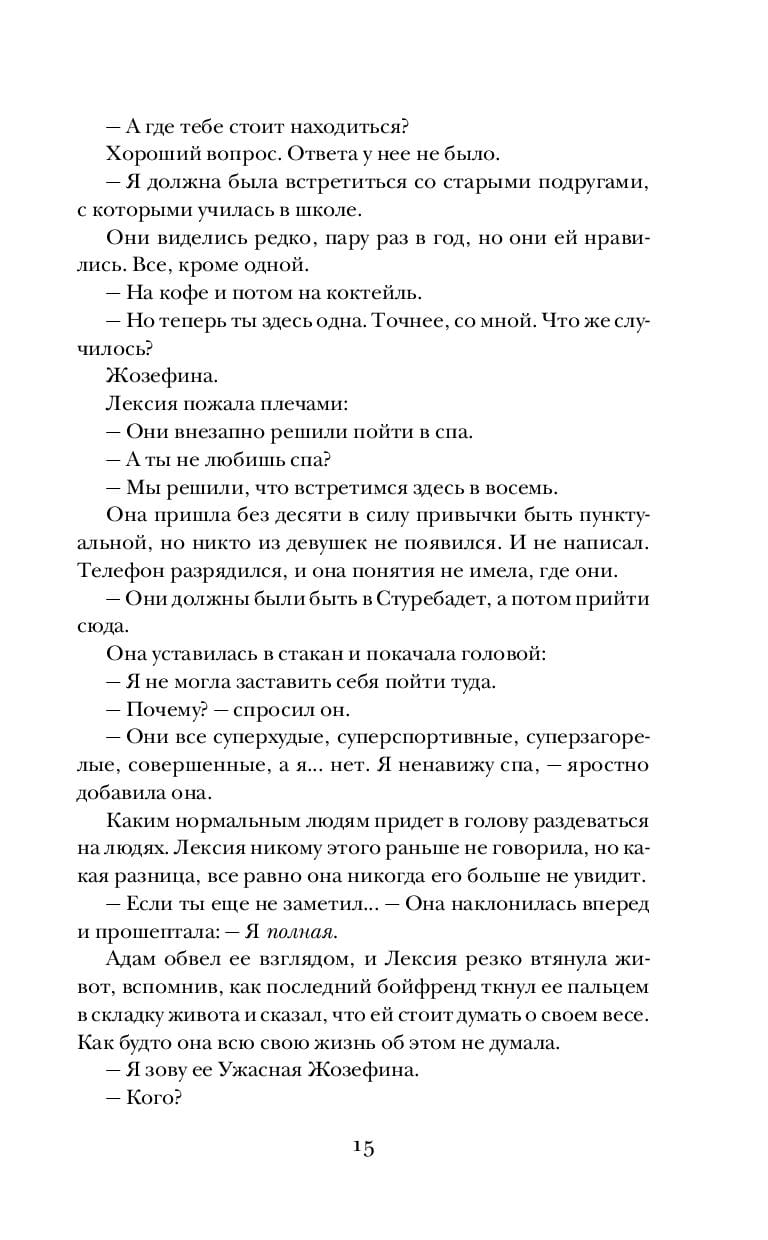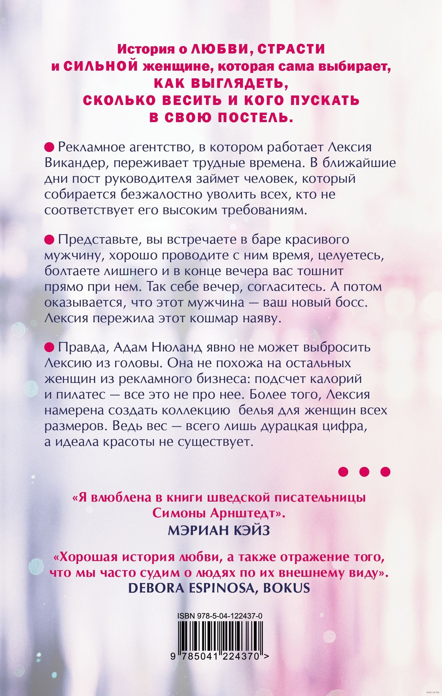 История о любви, страсти и сильной женщине, которая сама выбирает, как выглядеть, сколько весить и кого пускать в свою постель. Рекламное агентство, в котором работает Лексия Викандер, переживает трудные времена. В ближайшие дни пост руководителя займет человек, который собирается безжалостно уволить всех, кто не соответствует его высоким требованиям. Представьте, вы встречаете в баре красивого мужчину, хорошо проводите с ним время, целуетесь, болтаете лишнего и в конце вечера вас тошнит прямо при нем. Так себе вечер, согласитесь. А потом оказывается, что этот мужчина — ваш новый босс. Лексия пережила этот кошмар наяву. Правда, Адам Нюланд явно не может выбросить Лексию из головы. Она не похожа на остальных женщин из рекламного бизнеса: подсчет калорий и пилатес — все это не про нее. Более того, Лексия намерена создать коллекцию белья для женщин всех размеров. Ведь вес — всего лишь дурацкая цифра, а идеала красоты не существует.
