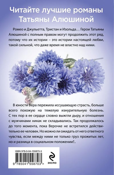 В юности Вера пережила иссушающую страсть, больше всего похожую на тяжелую изнурительную болезнь. С тех пор в ее сердце словно выжгли дыру, и отношения с мужчинами никак не складывались. Так продолжалось до того момента, пока Верочке не встретился действительно ее человек. Но можно ли ожидать от него ответного чувства, если между ними не только груз прожитых лет, но и разница в социальном положении?..