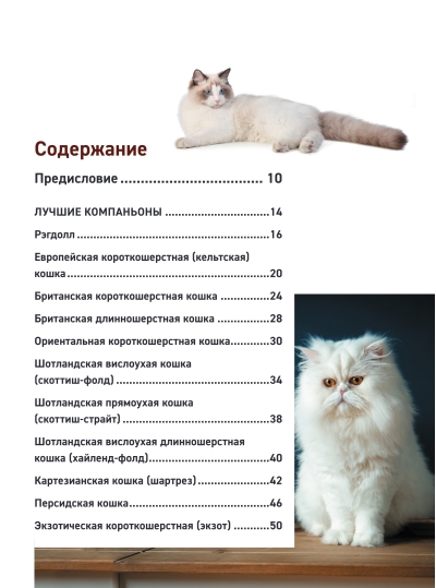 Каждая порода отличается своими особенностями в поведении, уходе и воспитании. Эта книга поможет выбрать именно ту кошку, которая не только зацепит своей неповторимой красотой и изящностью, но будет близка вам по характеру, образу жизни и предпочтениям. В ней рассказано обо всех популярных породах: крупных и миниатюрных, активных и спокойных, пушистых и короткошерстных. В обзоре каждой породы вы найдете подробное описание и стандарты, сведения о темпераменте будущего питомца, рекомендации по уходу и содержанию.