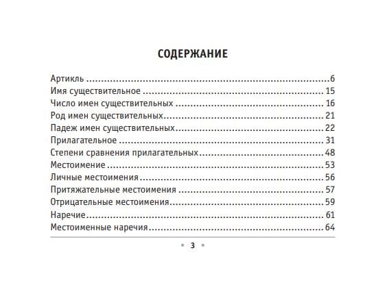 Данный справочник содержит все основные правила немецкой грамматики. Материал представлен в форме таблиц, теоретическая часть снабжена примерами употребления с переводом на русский язык. Формат издания позволяет иметь пособие по грамматике всегда под рукой.
