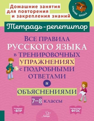 Все правила русского языка в тренировочных упражнениях с подробными ответами и объяснениями. 7-8 классы