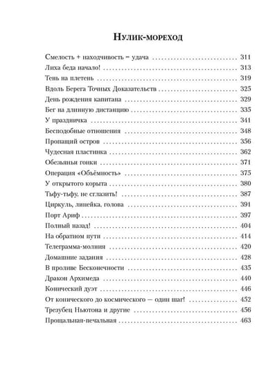Маленький, но очень любознательный житель страны чисел Нулик приглашает в захватывающее путешествие по миру самой точной из наук! Вам предстоит провести три ярких дня в Арифметическом государстве Карликания, раскрыть тайну Чёрной Маски из Аль-Джебры и стать, подобно Нулику, настоящими мореходами во время плавания по геометрическим морям и океанам. Простые и десятичные дроби, отрицательные числа, степени и уравнения, объёмы тел и площади фигур — всё это и многое другое становится понятным и невероятно увлекательным, рождая подлинный интерес к математическим наукам.