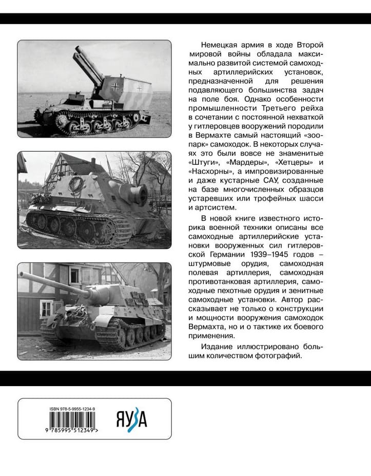 В новой книге известного историка военной техники описаны все самоходные артиллерийские установки вооруженных сил гитлеровской Германии 1939—1945 годов — штурмовые орудия, самоходная полевая артиллерия, самоходная противотанковая артиллерия, самоходные пехотные орудия и зенитные самоходные установки. Автор рассказывает не только о конструкции и мощности вооружения самоходок Вермахта, но и о тактике их боевого применения.