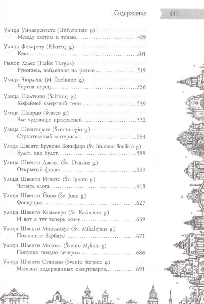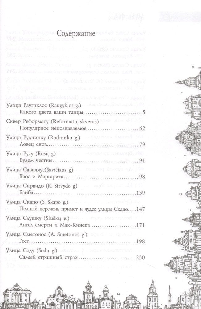 «В Старом городе Вильнюса, как выяснилось, сто сорок семь улиц, переулков, площадей, рынков и мостов; зная характер нашего города, мы не сомневаемся, что это число еще не раз изменится, здесь у нас чуть ли не каждый день что-нибудь появляется и исчезает, а всем кажется, всегда так и было — это одно из правил нашей тайной повседневной игры…»