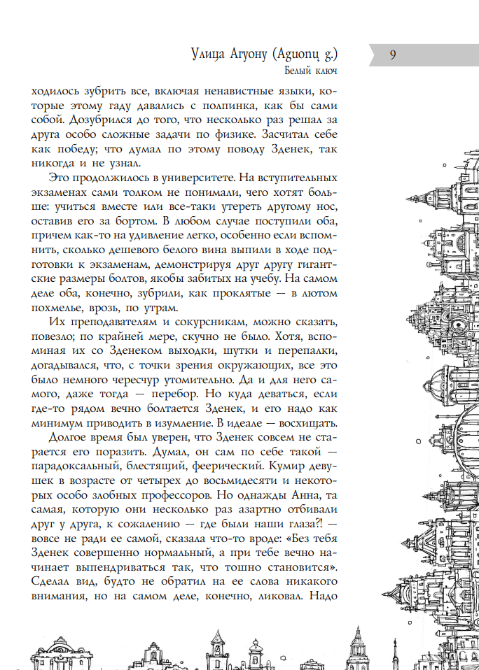 «‎В Старом городе Вильнюса, как выяснилось, сто сорок семь улиц, переулков, площадей, рынков и мостов; зная характер нашего города, мы не сомневаемся, что это число еще не раз изменится, здесь у нас чуть ли не каждый день что-нибудь появляется и исчезает, а всем кажется, всегда так и было — это одно из правил нашей тайной повседневной игры…»