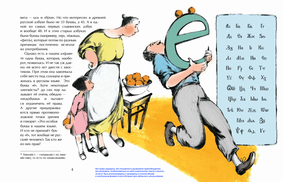 У буквы «ё» – непростая и очень интересная судьба, имеются влиятельные и авторитетные друзья, но есть и немало противников. Вокруг неё всегда возникали и до сих пор кипят горячие споры. История буквы «ё», самой новой из всех букв современного русского алфавита, ярко, с юмором рассказана в этой книге.