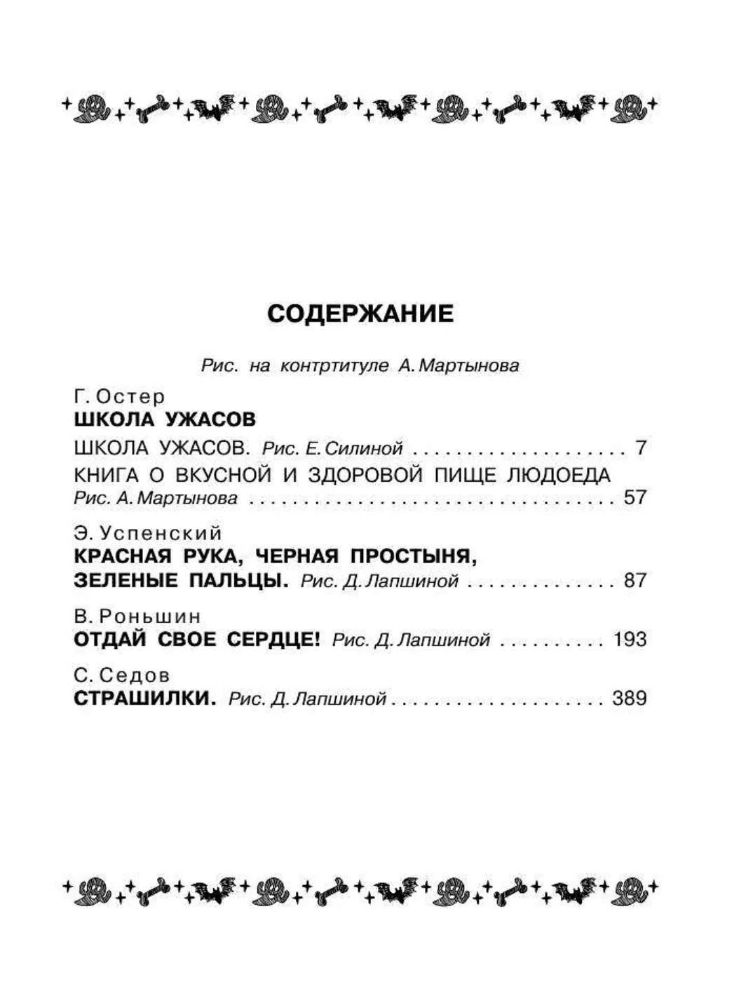 В книгу «Все-все-все страшные истории для детей» вошли истории, написанные знаменитыми писателями: Григорием Остером, Эдуардом Успенским, Валерием Роньшиным и Сергеем Седовым. Из чего можно сделать вывод, что страшилки интересны не только подросткам, но и серьёзным, взрослым людям, которые тоже были сами детьми и ужасно обожали рассказывать мистические истории. Читать эти истории одно удовольствие: можно и побояться, и посмеяться, а потом пересказать их своим друзьям тёмным вечером под завывание ветра, а, может быть и вовсе не ветра, а привидений…