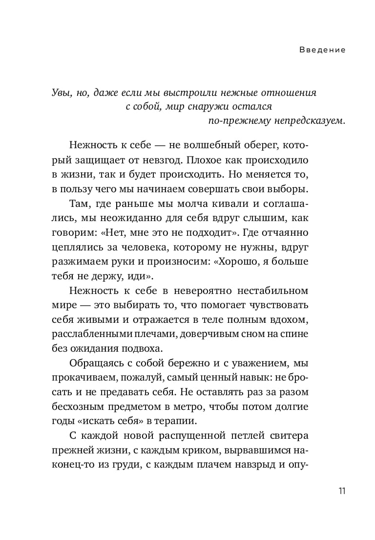 В новой книге Ольга Примаченко, автор бестселлеров «К себе нежно» и «С тобой я дома», рассказывает о том, за что держаться, когда земля уходит из-под ног. Как себе помочь, если приходится прощаться с тем, что дорого сердцу — будь то человек, дом или ускользающая красота. Как прожить жизненные перемены бережно к себе — и вновь обрести опоры. Несмотря ни на что, жизнь продолжается, и в ней по-прежнему есть место мечтам, надежде и вере в лучшее.