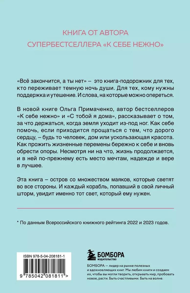 «Всё закончится, а ты нет» ─ это книга-подорожник для тех, кто переживает темную ночь души. Для тех, кому нужна поддержка и утешение. И слова, на которые можно опереться.