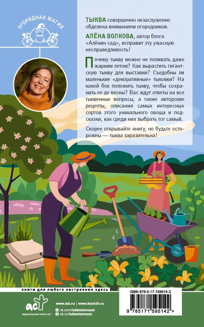 Почему тыкву можно не поливать даже жарким летом? Как вырастить гигантскую тыкву для выставки? Съедобны ли маленькие «декоративные» тыковки? На какой бок положить тыкву, чтобы сохранить ее до весны?  Вас ждут ответы на все тыквенные вопросы, а также авторские рецепты, описания самых интересных сортов этого уникального овоща и подсказки, как среди них выбрать тот самый. Скорее открывайте книгу, но будьте осторожны — тыква заразительна!