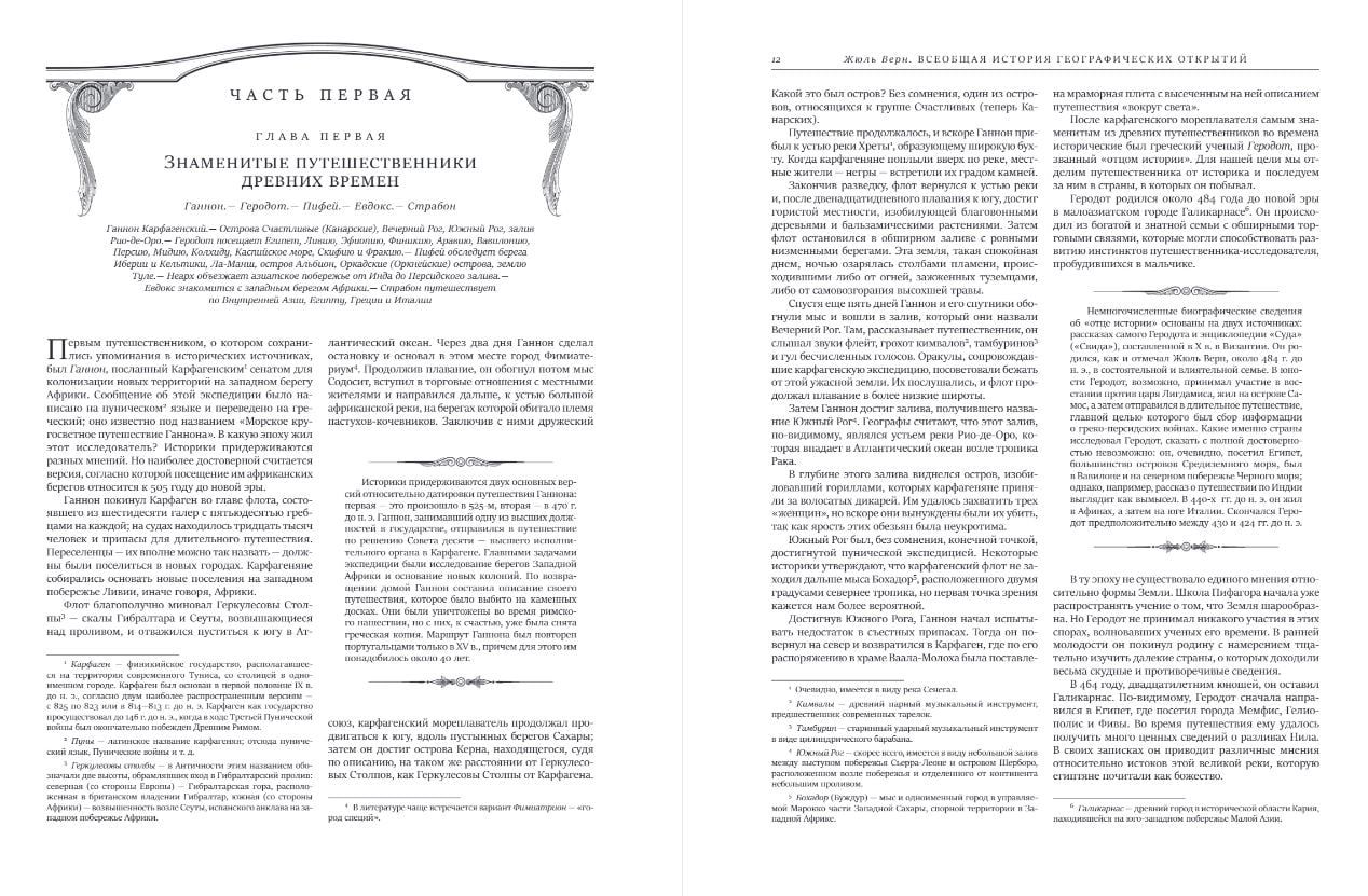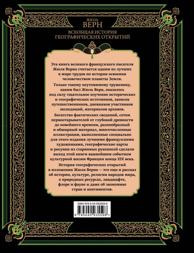 История географических открытий в изложении Жюля Верна пользуется заслуженной славой одного из лучших изданий по истории освоения человечеством планеты Земля. «Цель книги,— писал Жюль Верн о своей работе,— представить в истинном свете значение всех путешественников, начиная от Ганнона и Геродота и заканчивая Ливингстоном и Стэнли». К воплощению своего любимого замысла написать серьезную, основательную и вместе с тем занимательную историю писатель шел всю жизнь: многие годы кропотливо накапливал фактический материал и долгих 10 лет писал этот труд.