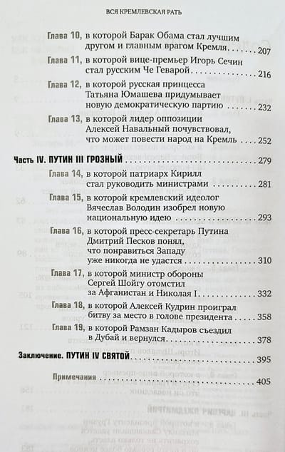 Эта книга рассказывает об истории России на всем протяжении правления Владимира Путина, с 2000 по 2015 год. В основу книги легли документы, открытые источники и десятки уникальных личных интервью, которые автор взял у действующих лиц из ближайшего окружения Владимира Путина. Собранные воедино, факты, события, интриги и мнения героев составляют полную картину жизни Кремля, из которой впервые становится понятна логика метаморфозы Владимира Путина: как и почему из либерального прозападного президента начала 2000-х он превратился в авторитарного правителя и одного из самых ярых противников Запада.