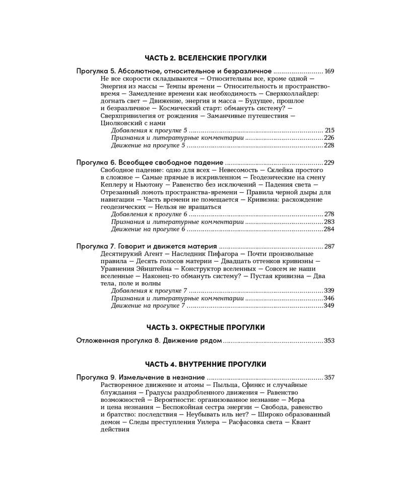 В книге обсуждаются функционирование Солнечной системы и возможности путешествий по ней; взаимоотношения пространства, времени и движения в специальной теории относительности и определяемые ими проблемы галактических перелетов; общая теория относительности и ее эффекты, включая некеплеровы орбиты, замедление времени, гравитационные волны и экзотические способы сверхсветового перемещения; энтропия как незнание о микроскопическом движении и ее приложения от тепловых машин до демона Максвелла и черных дыр; квантовая механика, включая прохождение сквозь стены, уникальность устройства атомов, запутанность и интерпретации, призванные прояснить состояние кошки Шрёдингера. По правилам нашей Вселенной в ней невозможен покой, и читателю предстоит оценить ее беспокойное разнообразие.