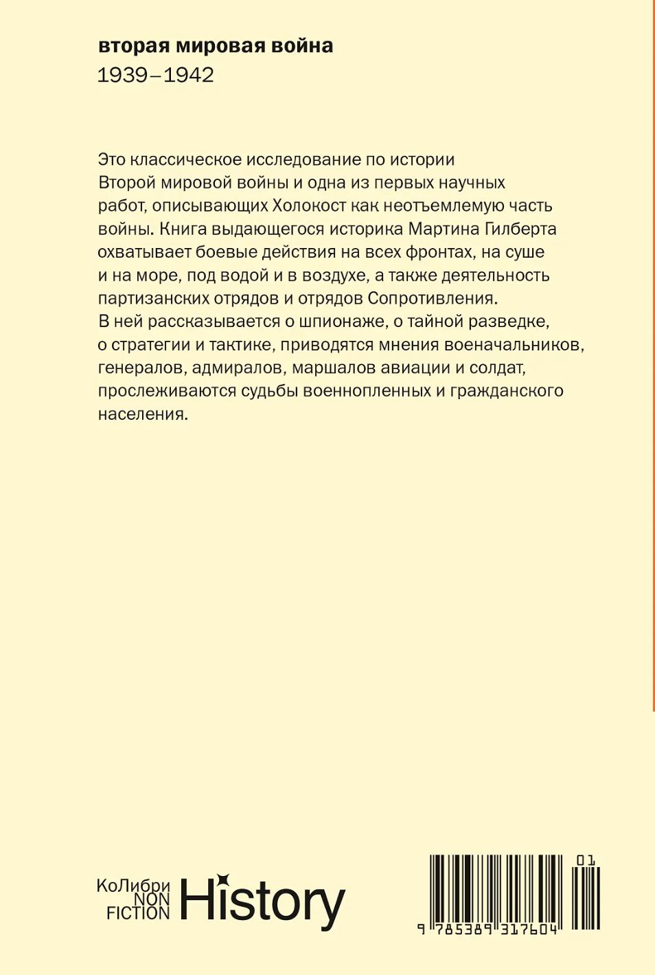 В этой книге известный историк Мартин Гилберт, опираясь на тысячи документов и свидетельств, создал полномасштабную хронику самой разрушительной войны в истории человечества. С началом войны европейские конфликты стремительно переросли в глобальную катастрофу: вторжение в Польшу, падение Парижа, нападение на Пёрл-Харбор и Битва за Москву. Автор не ограничивается описанием движения армий на карте, показывая, как «молниеносная война» Гитлера перемалывала судьбы миллионов людей — от солдат в окопах до мирных жителей под бомбежками Лондона и Ленинграда. Какие дипломатические просчеты европейских лидеров сделали глобальный конфликт неизбежным? Какую цену пришлось заплатить Великобритании, чтобы выстоять в одиночку против всей мощи люфтваффе? Почему план «Барбаросса» дал сбой там, где немецкое командование ожидало легкой победы? Это история о том, как мир, шаг за шагом, погружался в хаос тотального противостояния.