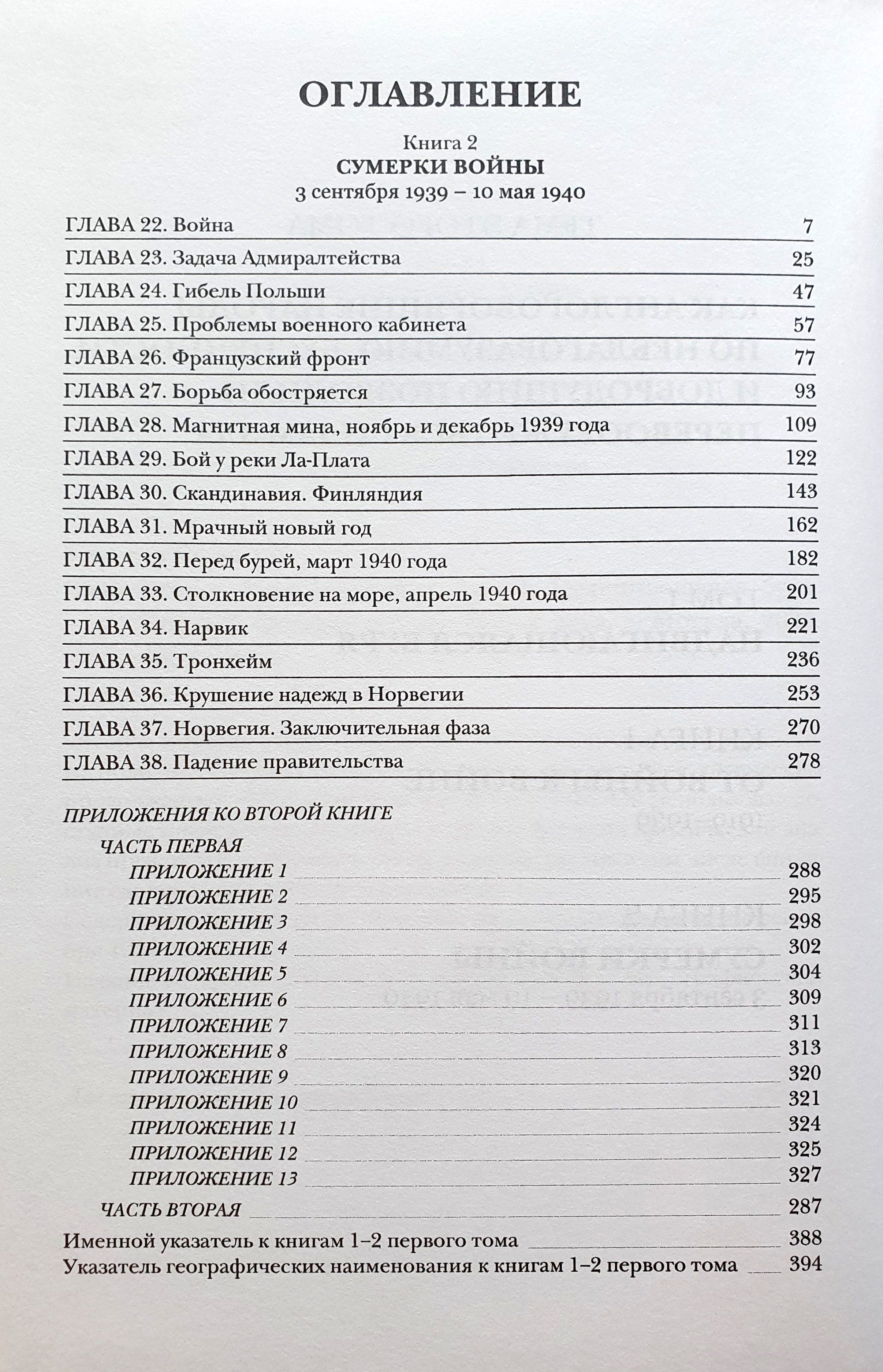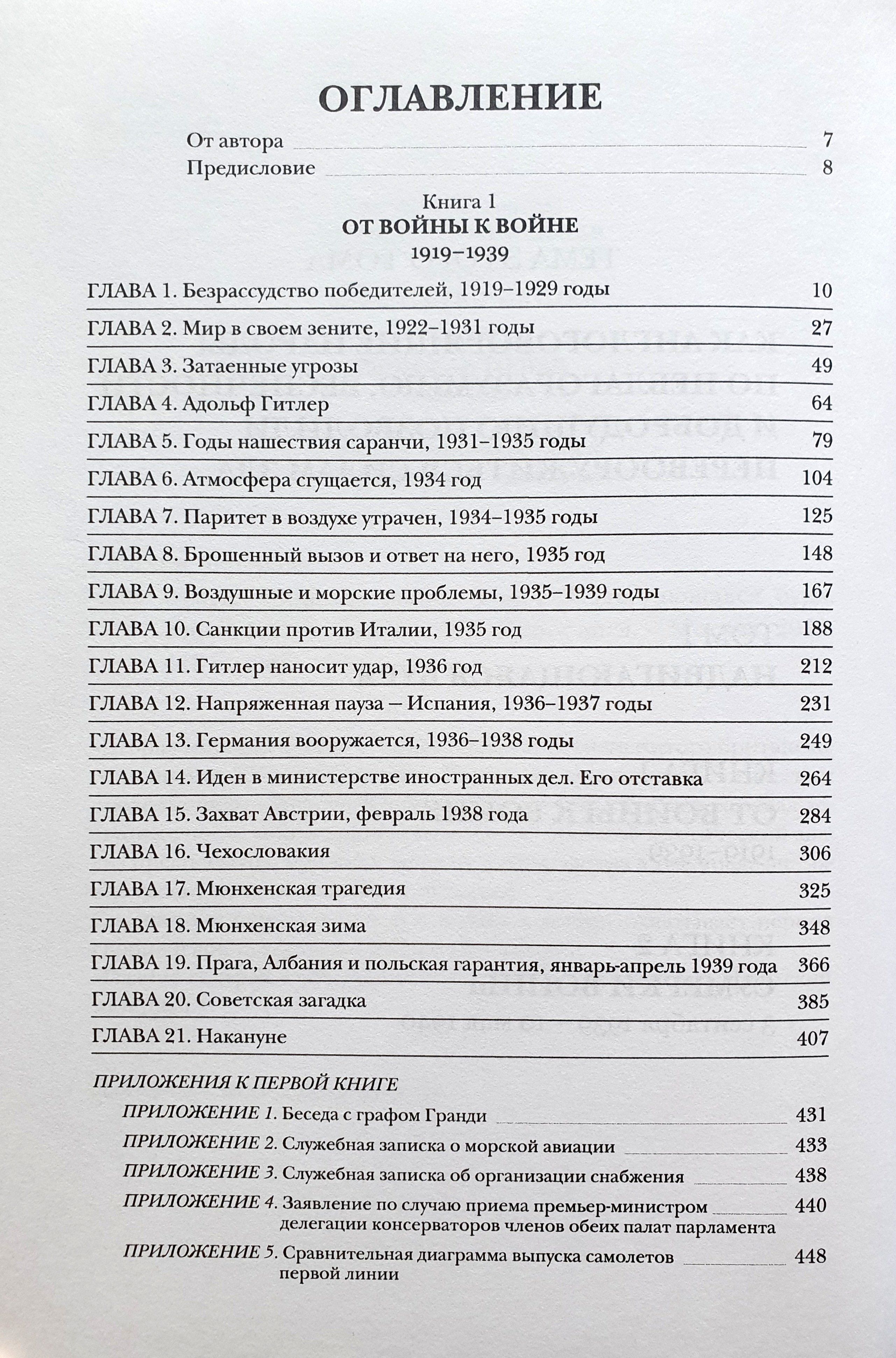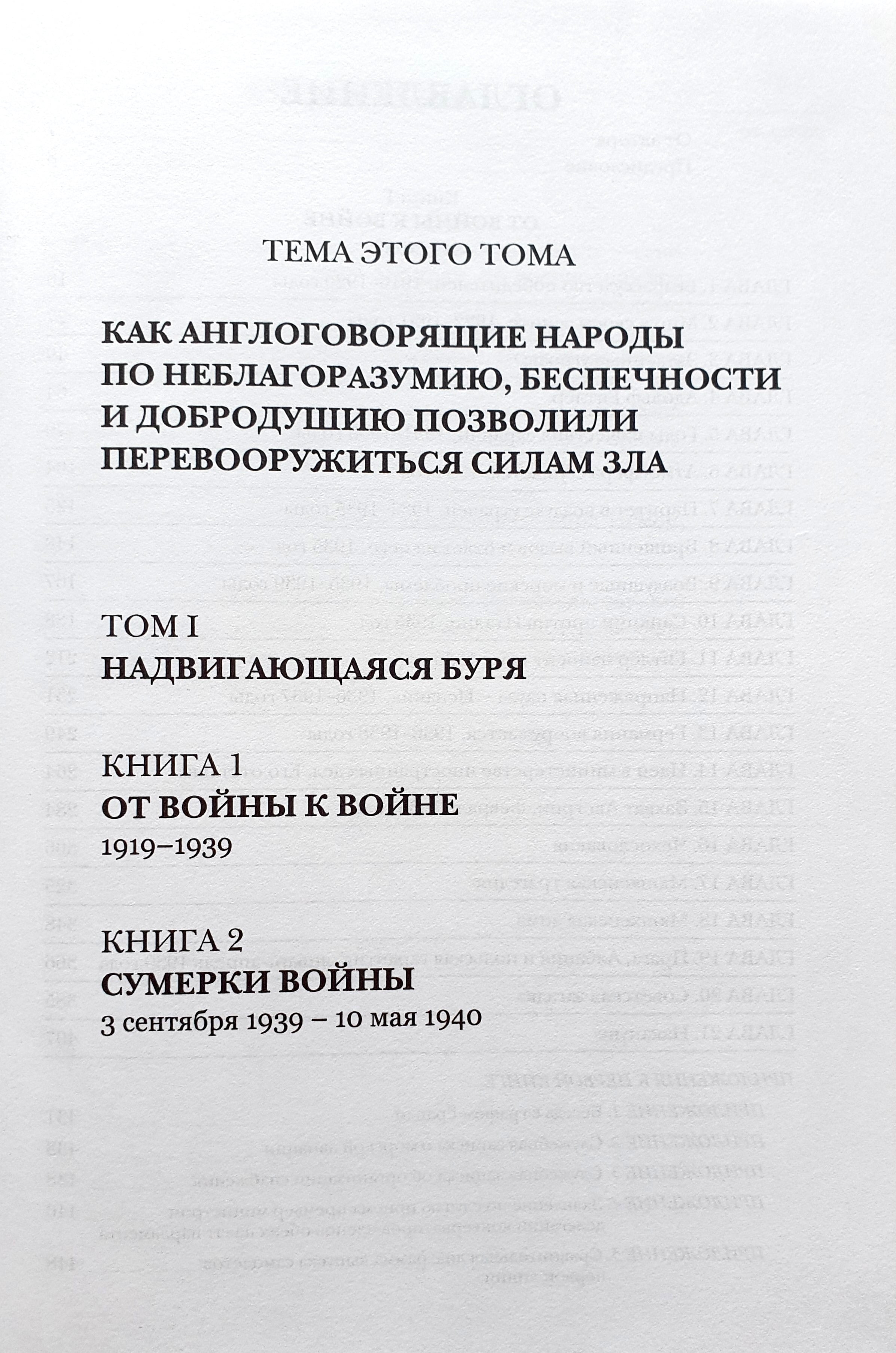 Содержание первой книги «От войны к войне» охватывает период европейской истории от 1919 до 1939 годов. Содержание второй книги включает начало войны в период с сентября 1939 по май 1940 года. Издание содержит обширный иллюстративный и картографический материал.