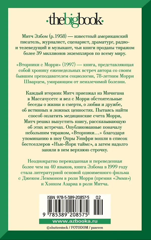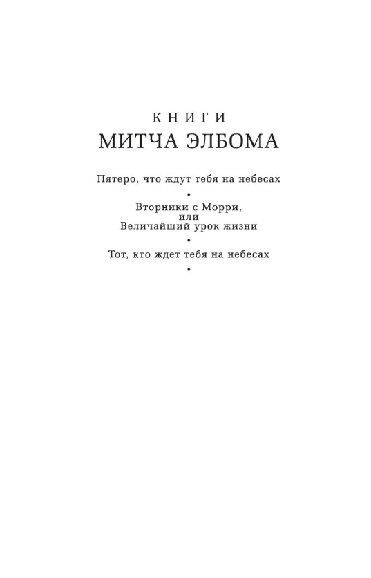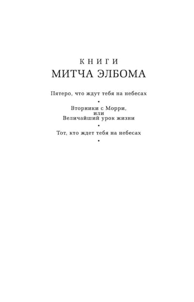 Митч Элбом (р. 1958) – известный американский писатель, журналист, сценарист, драматург, радио- и телеведущий и музыкант, чьи книги проданы тиражом более 39 миллионов экземпляров по всему миру.