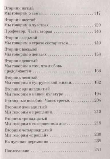«Вторники с Морри» (1997) –книга, представляющая собой хронику еженедельных встреч автора со своим бывшим преподавателем социологии, 78-летним Морри Шварцем, умирающим от неизлечимой болезни. Каждый вторник Митч приезжал из Мичигана в Массачусетс и вел с Морри обстоятельные беседы о жизни и смерти, о любви и дружбе, об истинных и ложных ценностях. Пытаясь найти способ оплатить медицинские счета Морри, Митч решил выпустить книгу, рассказывающую об этих встречах.