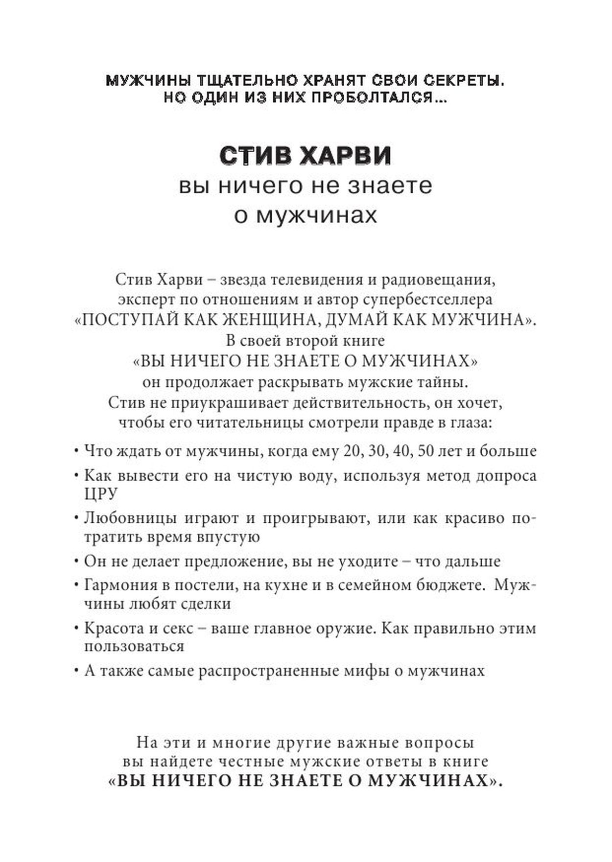 Понять, почему мужчины поступают тем или иным способом, и растолковать это женщинам способен только мужчина. Стив не стал приукрашивать действительность, он хочет, чтобы его читательницы смотрели правде в глаза.