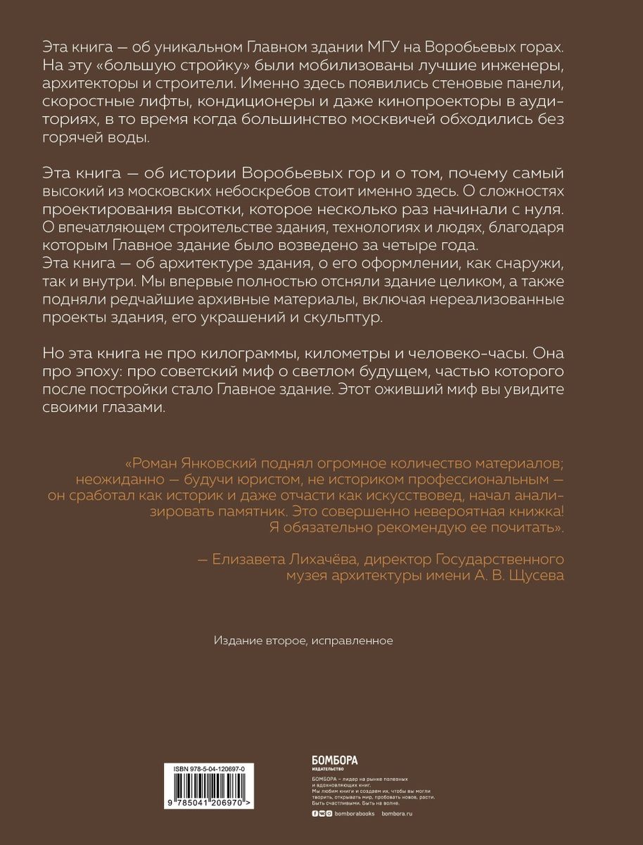 Вы держите в руках первую иллюстрированную книгу о Главном здании МГУ. Автор проекта Роман Янковский провел масштабную кампанию, в ходе которой ему удалось собрать огромное количество архивных материалов, схем и рассказов жителей города.