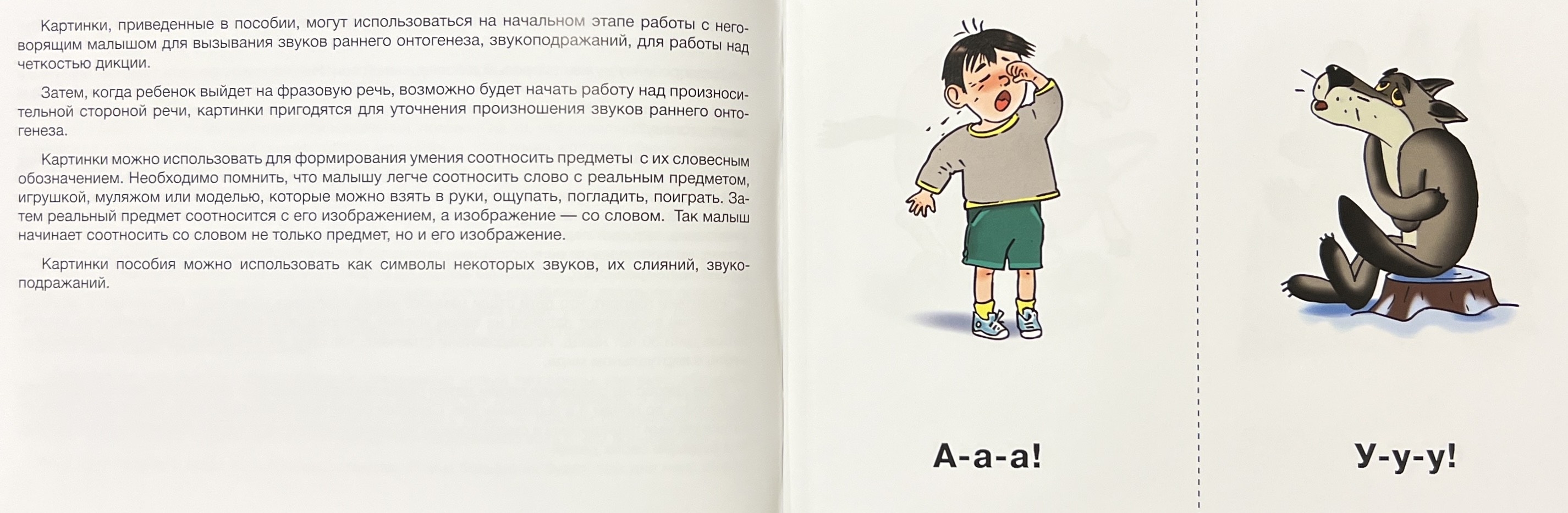 В пособии представлены предметные и простые сюжетные картинки, так называемые картинки-действия, которые необходимы педагогам и родителям малышей на этапе вызывания звуков раннего онтогенеза, первых слов и фразовой речи. Логопедам, дефектологам, нейропсихологам, работающим с неговорящими детьми, раннего дошкольного возраста.