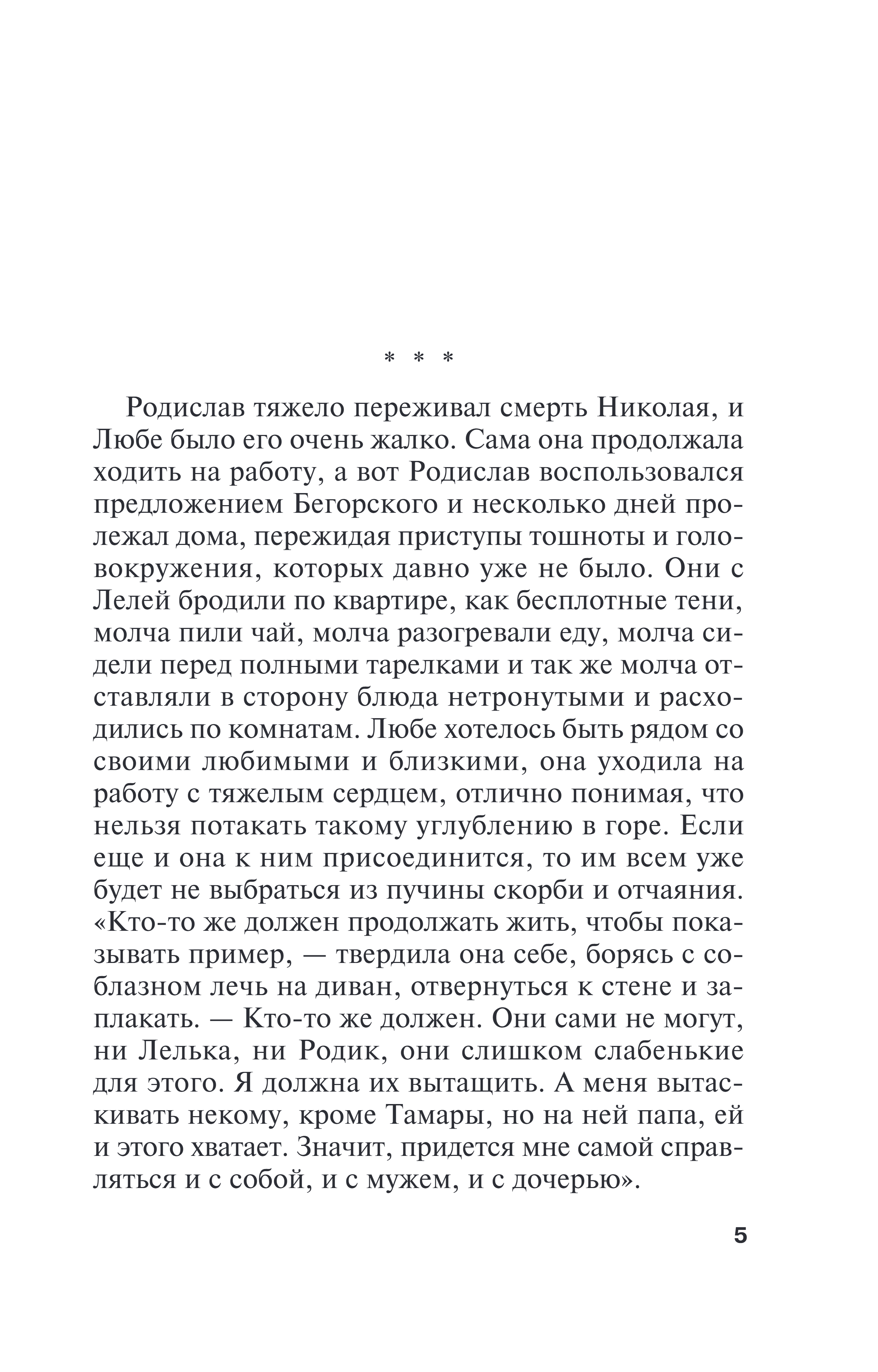 Все не так просто, не так ладно в семейной жизни Родислава и Любы Романовых, начинавшейся столь счастливо. Какой бы идиллической ни казалась их семья, тайные трещины и скрытые изъяны неумолимо подтачивают ее основы. И Любе, и уж тем более Родиславу есть за что упрекнуть себя, в чем горько покаяться, над чем подумать бессонными ночами. И с детьми начинаются проблемы, особенно с сыном. То обстоятельство, что фактически по их вине в тюрьме сидит невиновный человек, тяжким грузом лежит на совести Романовых. Так дальше жить нельзя — эта угловатая, колючая, некомфортная истина становится все очевидней. Но Родислав и Люба даже не подозревают, как близки к катастрофе, какая тонкая грань отделяет супругов от того момента, когда все внезапно вскроется и жизнь покатится по совершенно непредсказуемому пути…