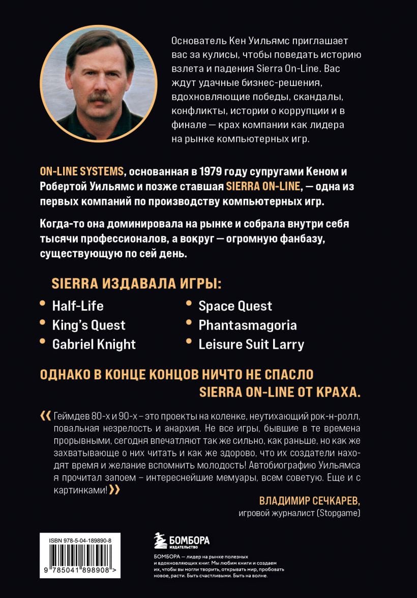Основатель Кен Уильямс приглашает вас за кулисы, чтобы поведать историю взлета и падения Sierra On-Line. Вас ждут удачные бизнес-решения, вдохновляющие победы, скандалы, конфликты, истории о коррупции и в финале — крах компании как лидера на рынке компьютерных игр.