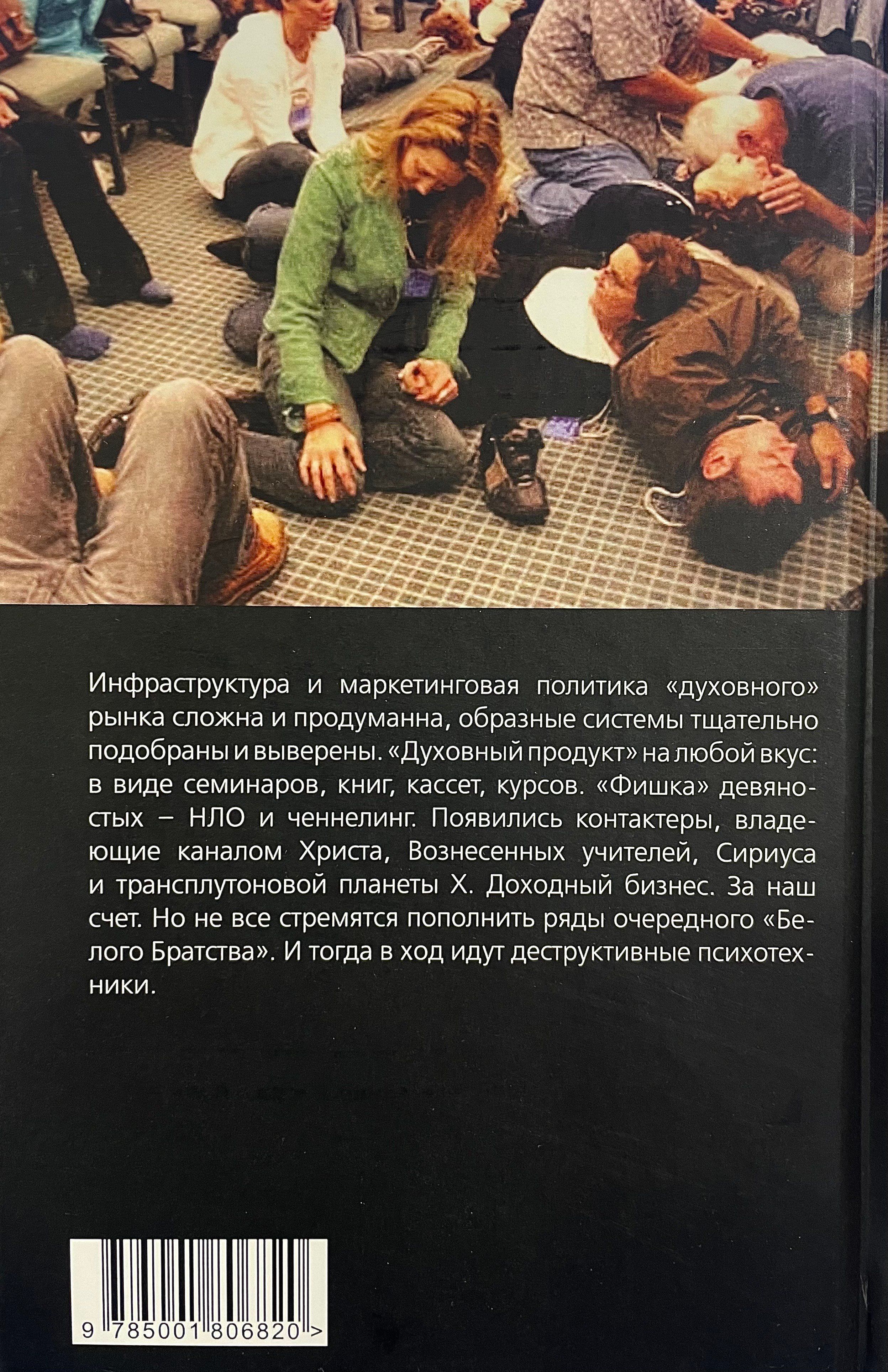 Инфраструктура и маркетинговая политика «духовного» рынка сложна и продуманна, образные системы тщательно подобраны и выверены. «Духовный продукт» на любой вкус: в виде семинаров, книг, кассет, курсов. «Фишка» девяностых - НЛО и ченнелинг. Появились контактеры, владеющие каналом Христа, Вознесенных учителей, Сириуса и трансплутоновой планеты X. Доходный бизнес. За наш счет. Но не все стремятся пополнить ряды очередного «Белого Братства». И тогда в ход идут деструктивные психотехники