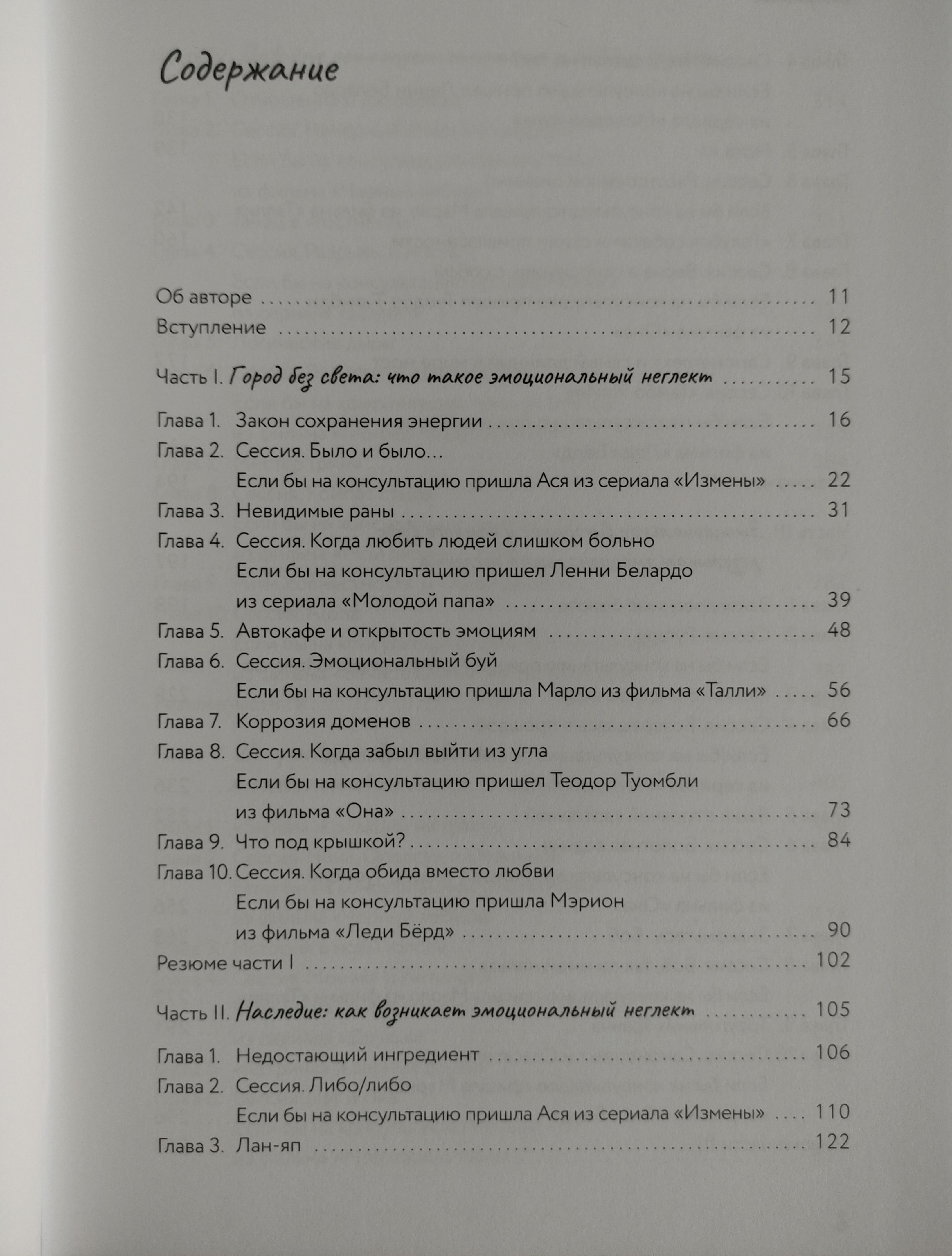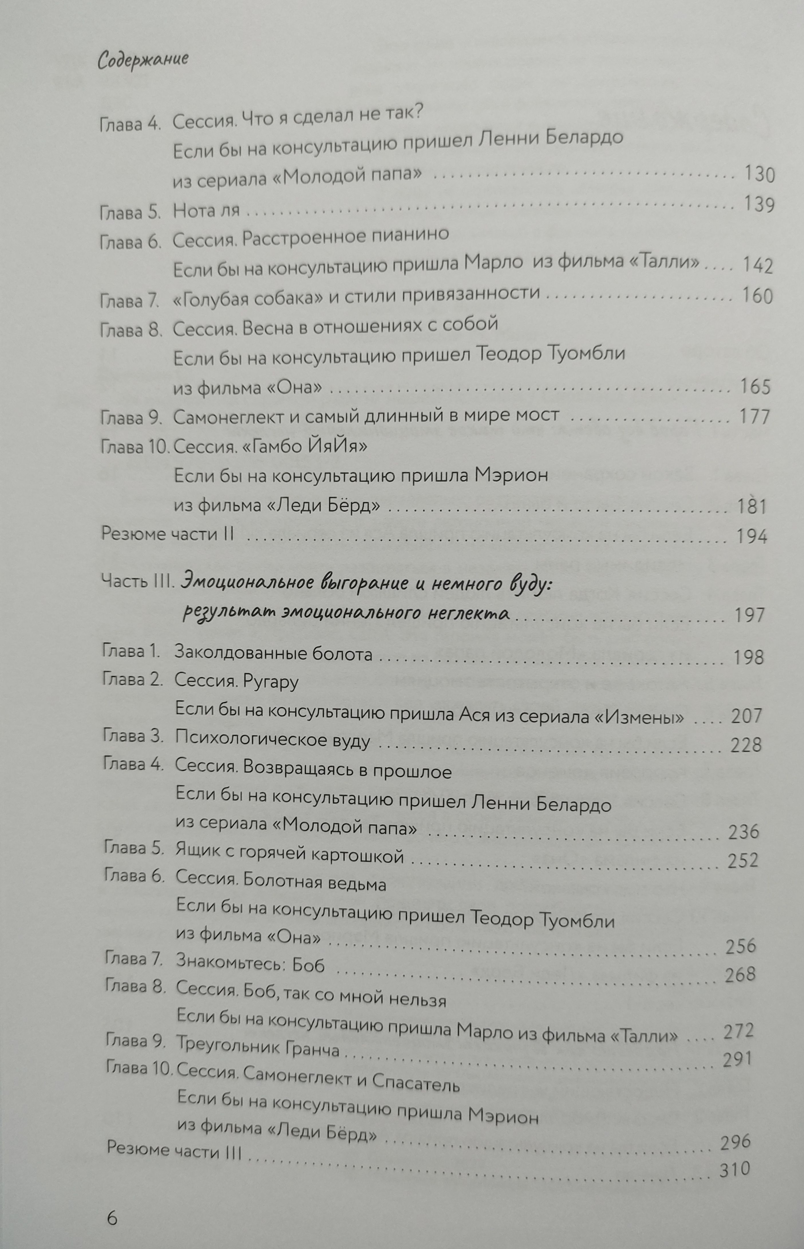 Третья линия представляет собой серию психологических консультаций. Ситуации типичные и методы реальные, но в роли клиентов выступают главные герои известных кинофильмов и сериалов, которые по воле воображения автора попадают к ней на консультации и достигают успехов в своей личной борьбе с психологическими проблемами, связанными среди прочего с эмоциональным неглектом (пренебрежением эмоциями).
