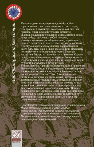 Войны периода Французской революции и правления Наполеона оставили в исторической памяти народов Европы множество ярких образов батальных сцен, но эта книга не совсем о них. Автор исследует различные аспекты военного опыта, которые редко затрагивались в традиционных описаниях военных действий и тактики на поле боя, но играли важнейшую роль в жизни всех, кто пережил эпоху Революционных и Наполеоновских войн. В книге освещаются тот многоплановый опыт военной поры, что выпал на долю современников событий, и пути его усвоения национальной памятью в течение следующего столетия.