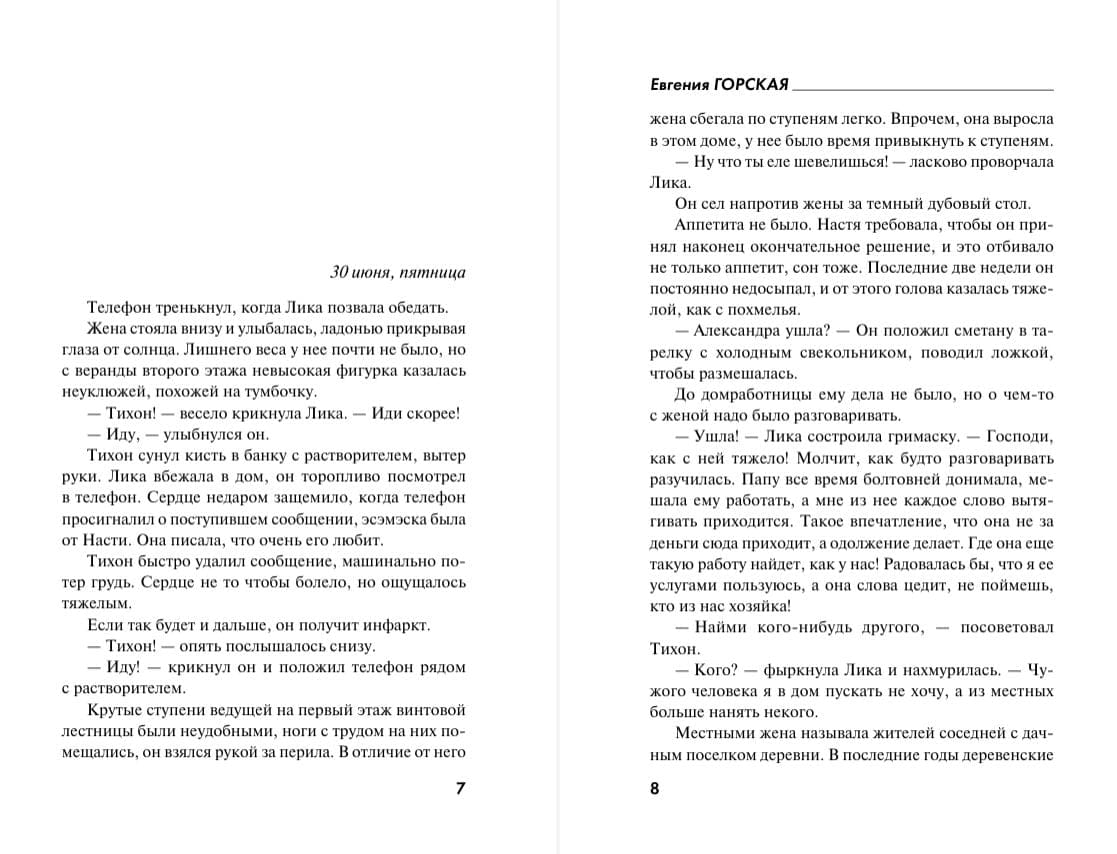 Тихон никак не может выбрать, с кем остаться: с женой или с любовницей. Красавица Настя ждет, что он уйдет от скучной Лики, а Тихон все тянет, не спеша принимать решение. Внезапно жена погибает, и он запоздало понимает, что любил только ее. По странному совпадению, с Ликой случилось то же самое, что и с ее матерью: она умерла в тридцать лет в результате несчастного случая. Тихон подозревает, что две эти истории связаны. Он пытается в них разобраться, рискуя стать новой жертвой преступника, который где-то рядом, но остается невидим…