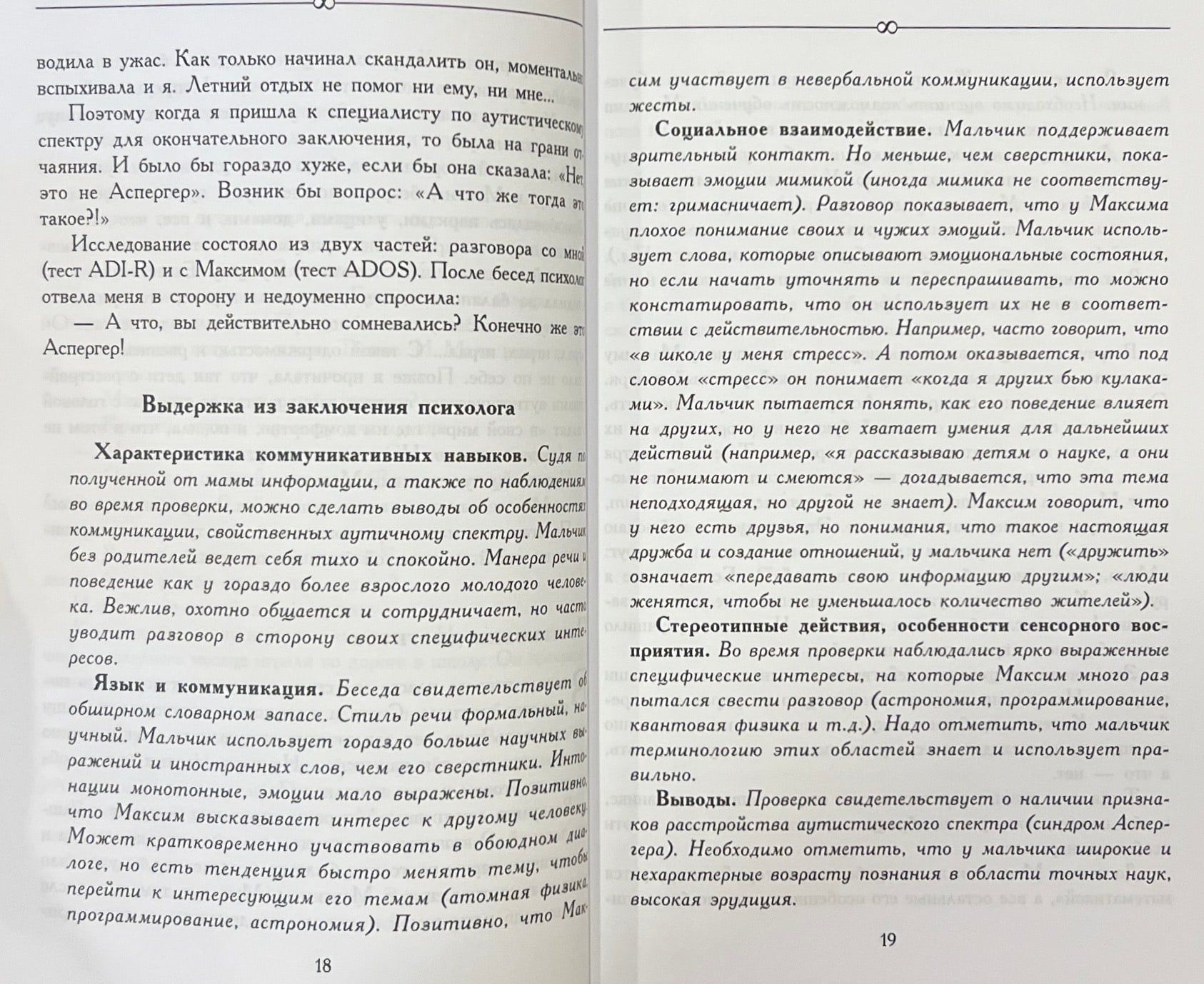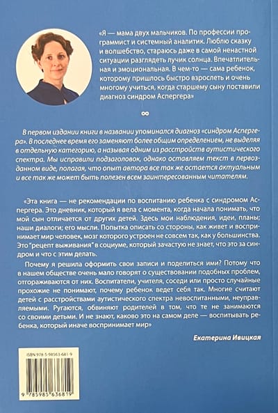 Книга написана в форме дневника и рассказывает об опыте воспитания ребенка с синдромом Аспергера (расстройство аутистического спектра). Автор делится с читателем своей историей: говорит о том, как осознать и принять то, что твой ребенок не такой, как все, и как не опускать руки, когда нет сил. Это книга о борьбе за счастье ребенка – она проникнута любовью к нему и содержит множество практических рекомендаций, которые могут быть полезны всем читателям.