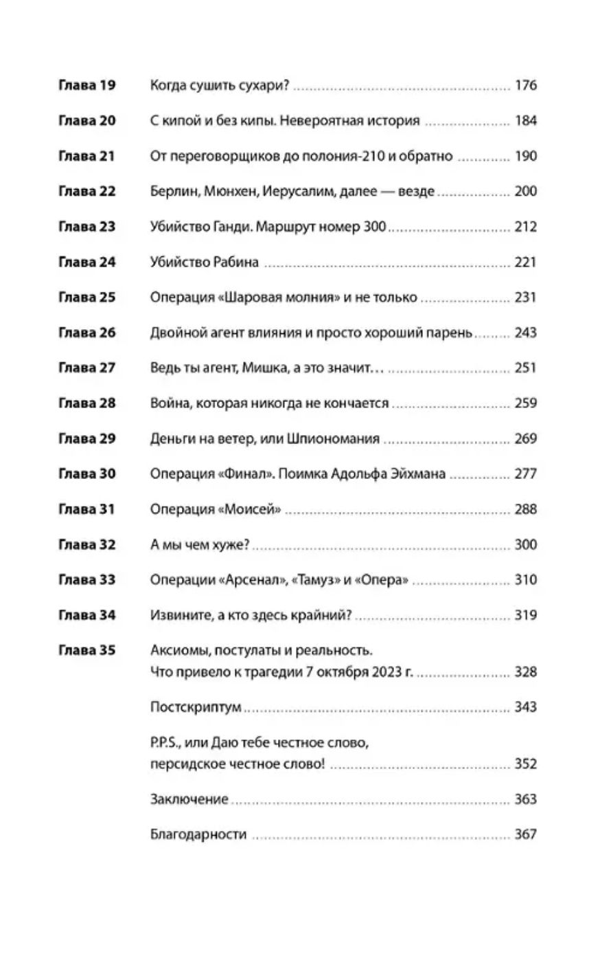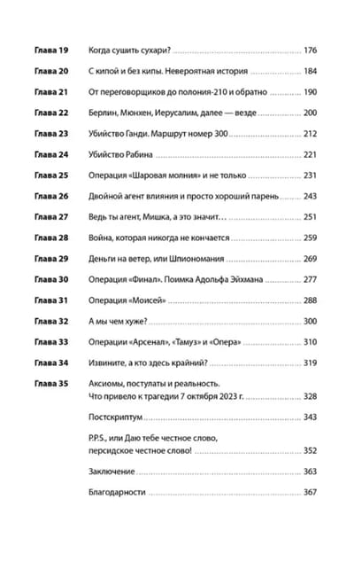 Вы узнаете о легендарных операциях, громких провалах, шпионских делах, которые повлияли на судьбу страны, и увидите, как прошлое переплетается с настоящим, включая трагические события 7 октября 2023 года и Ирано-израильский конфликт. Сочетая историческую достоверность и живой язык, книга поднимает острые темы — от этики спецопераций до политических ошибок, которые дорого обошлись стране.