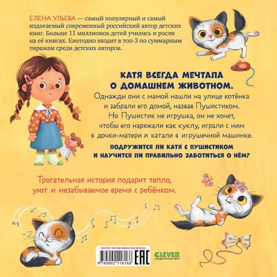Маленькая девочка Катя всегда хотела завести домашнее животное. Однажды они с мамой подобрали на улице котенка и назвали его Пушистиком. Девочка была счастлива: исполнилась ее мечта, теперь она хозяйка настоящего котика и может с ним играть! Но оказалось, что котенок не хочет наряжаться в кукольные платья, играть в дочки-матери и кататься в игрушечной машине. Сможет ли Катя подружиться с котёнком и научиться правильно заботиться о нем?