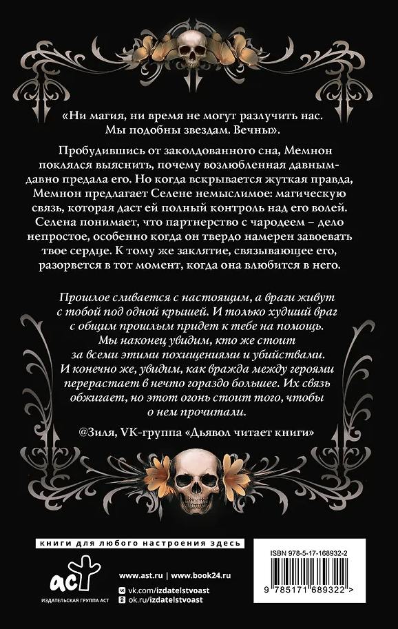 Пробудившись от заколдованного сна, Мемнон поклялся выяснить, почему возлюбленная давным-давно предала его. Но когда вскрывается жуткая правда, Мемнон предлагает Селене немыслимое: магическую связь, которая даст ей полный контроль над его волей. Селена понимает, что партнерство с чародеем — дело непростое, особенно когда он твердо намерен завоевать твое сердце. К тому же заклятие, связывающее его, разорвется в тот момент, когда она влюбится в него.